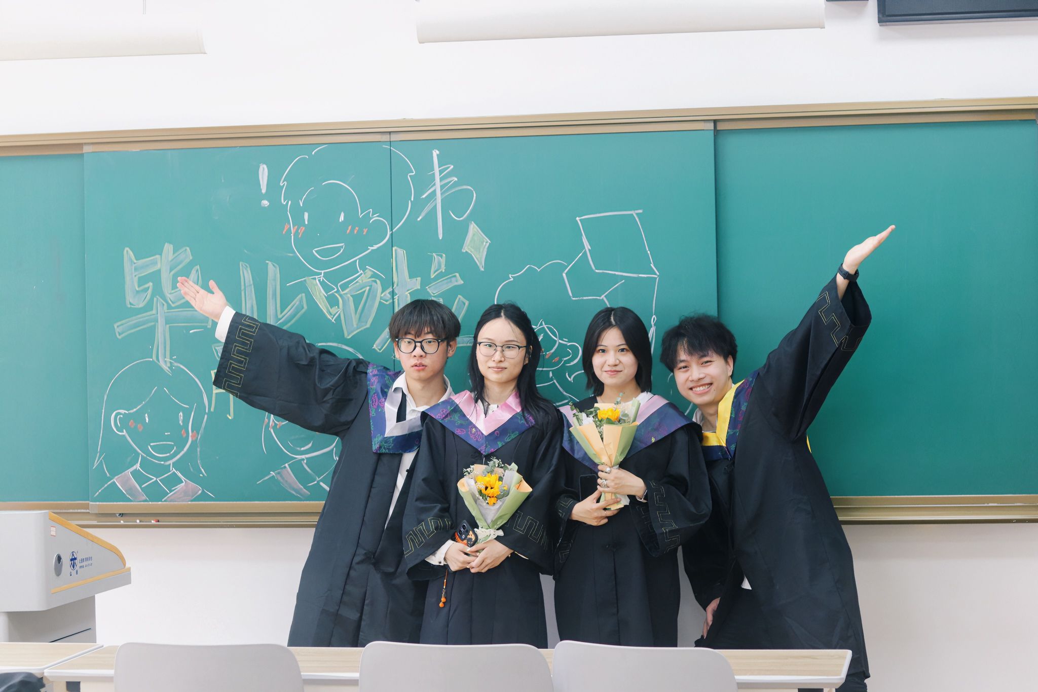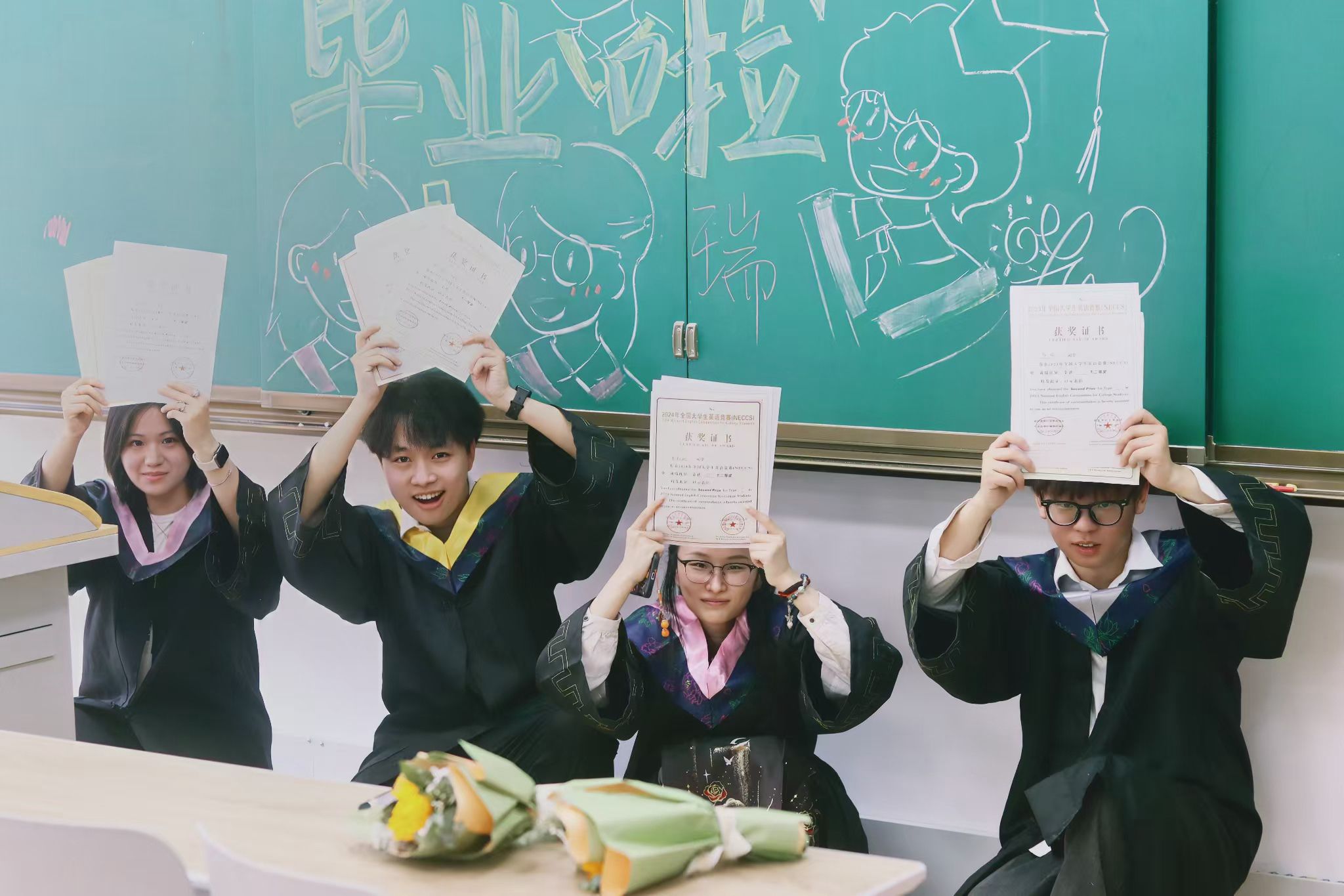 教室合影捧花 刘川峰摄