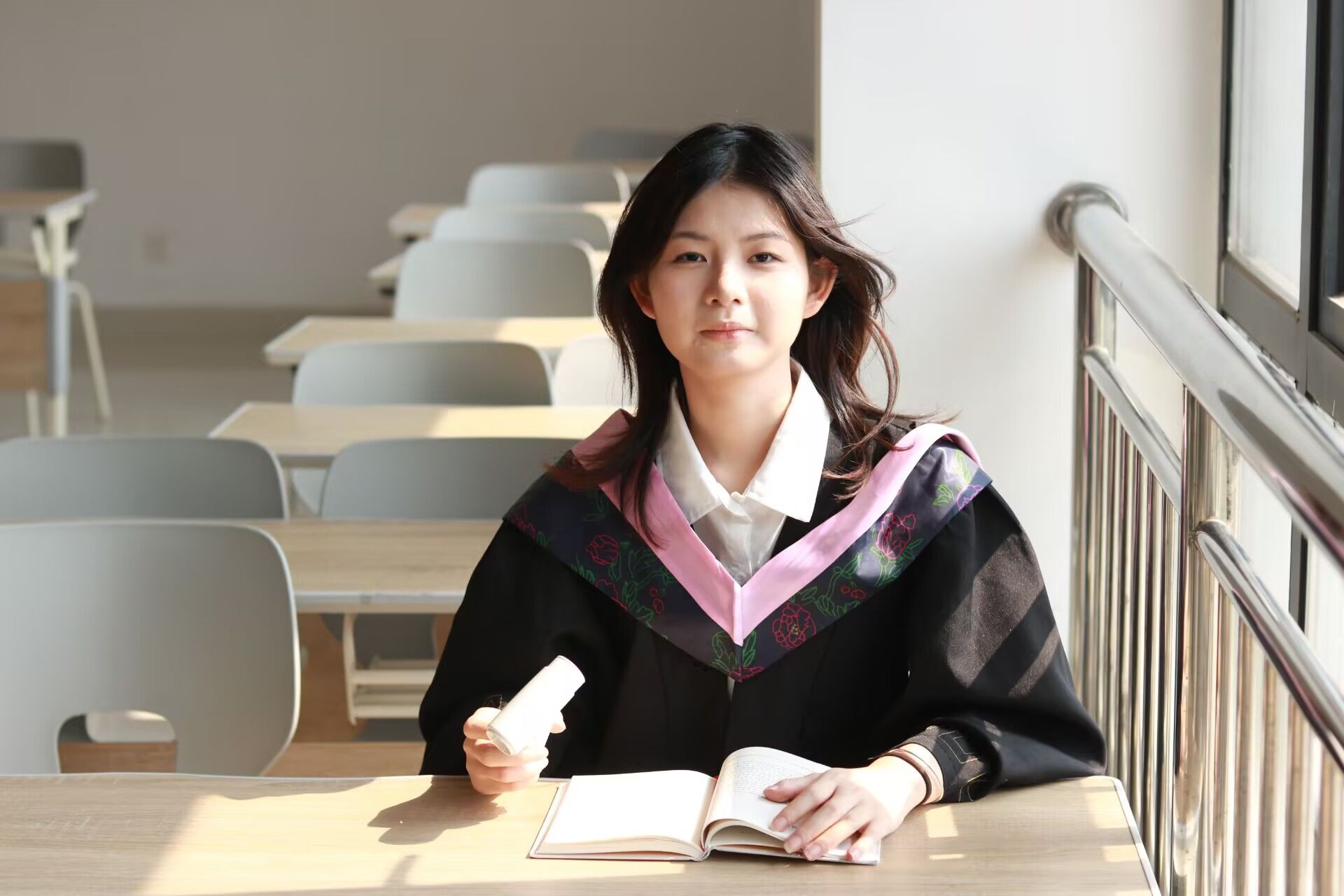 李荣荣捧着书 游雨昕摄