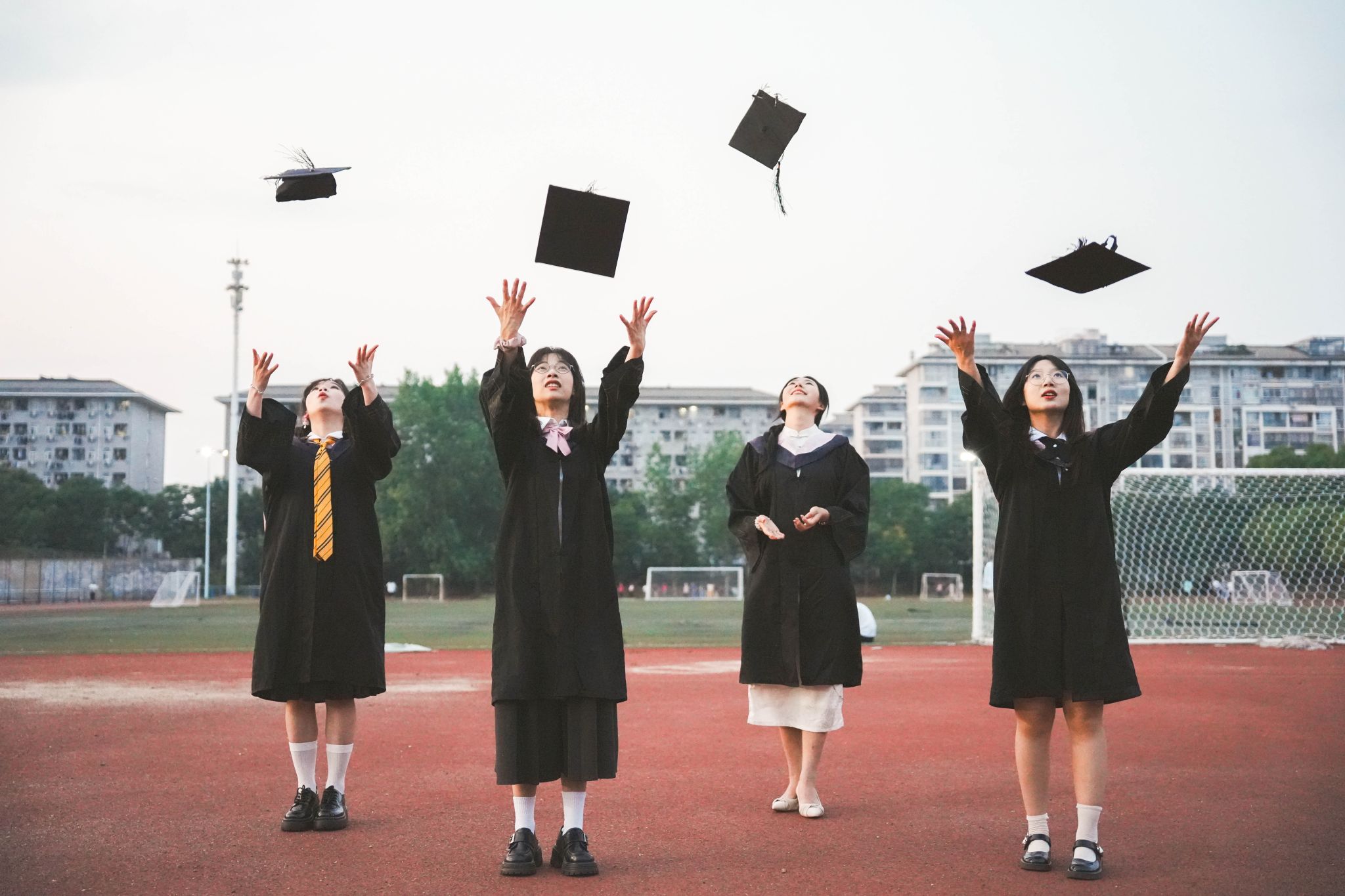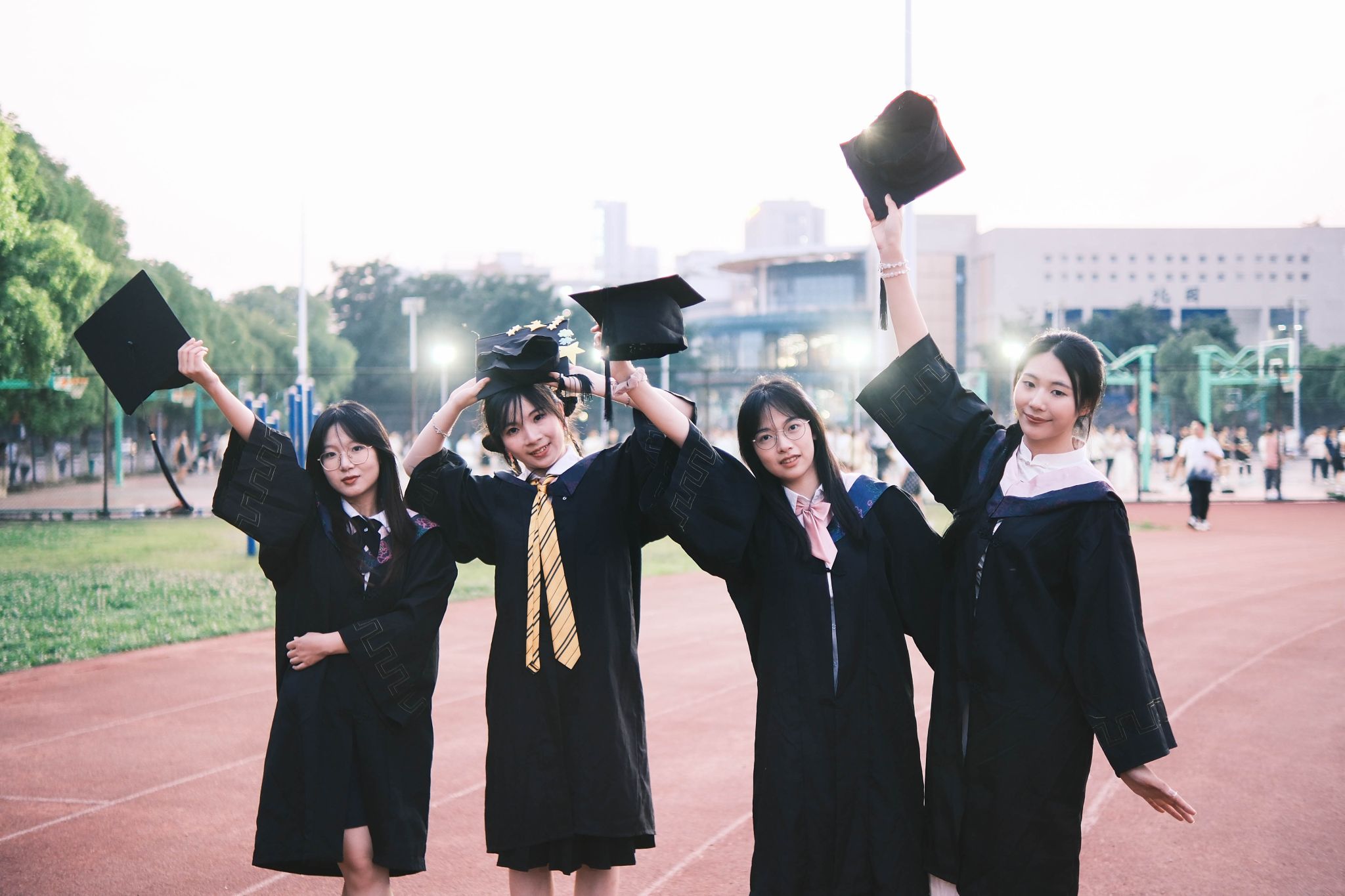 在跑道上的学士服合照 张贝贝摄
