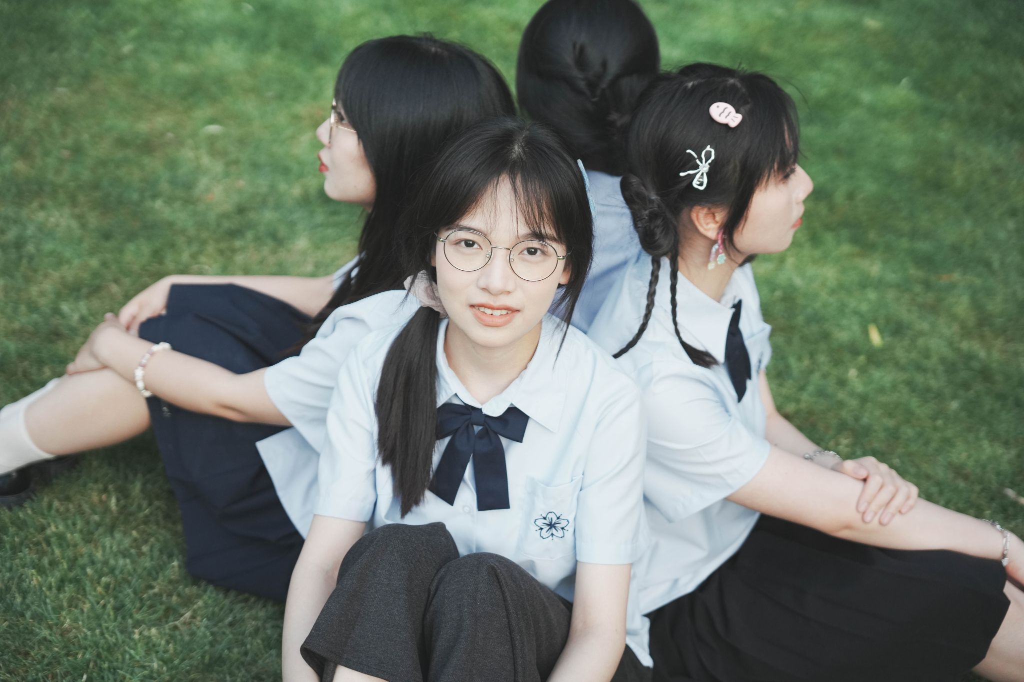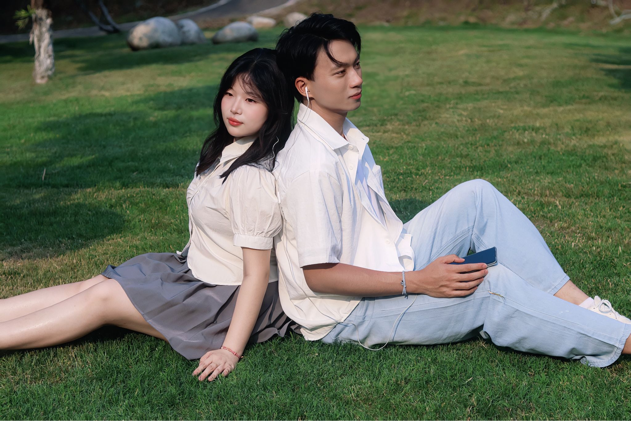 草坪上背靠背 张贝贝摄
