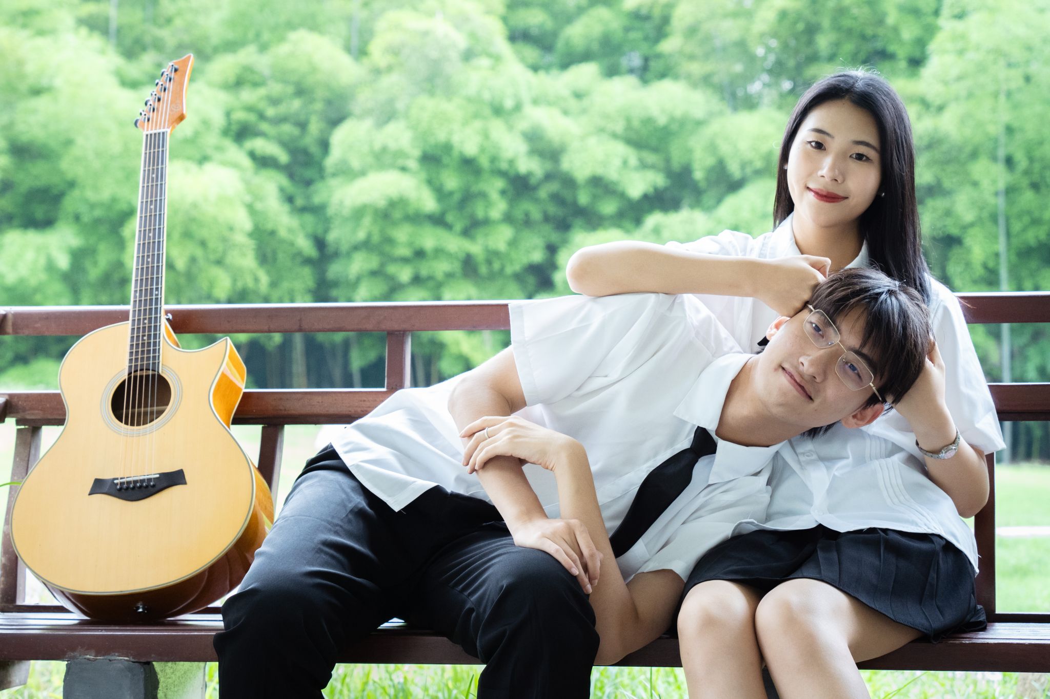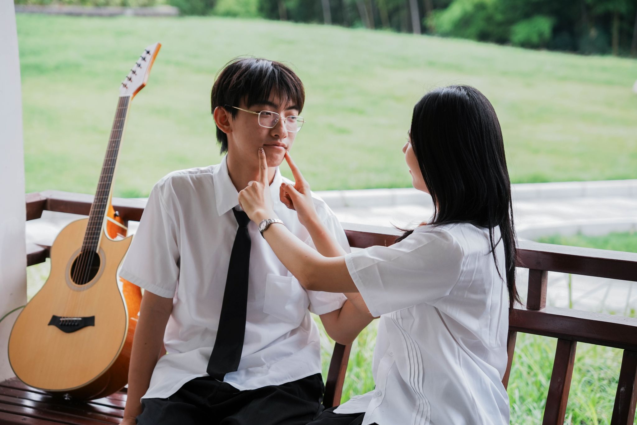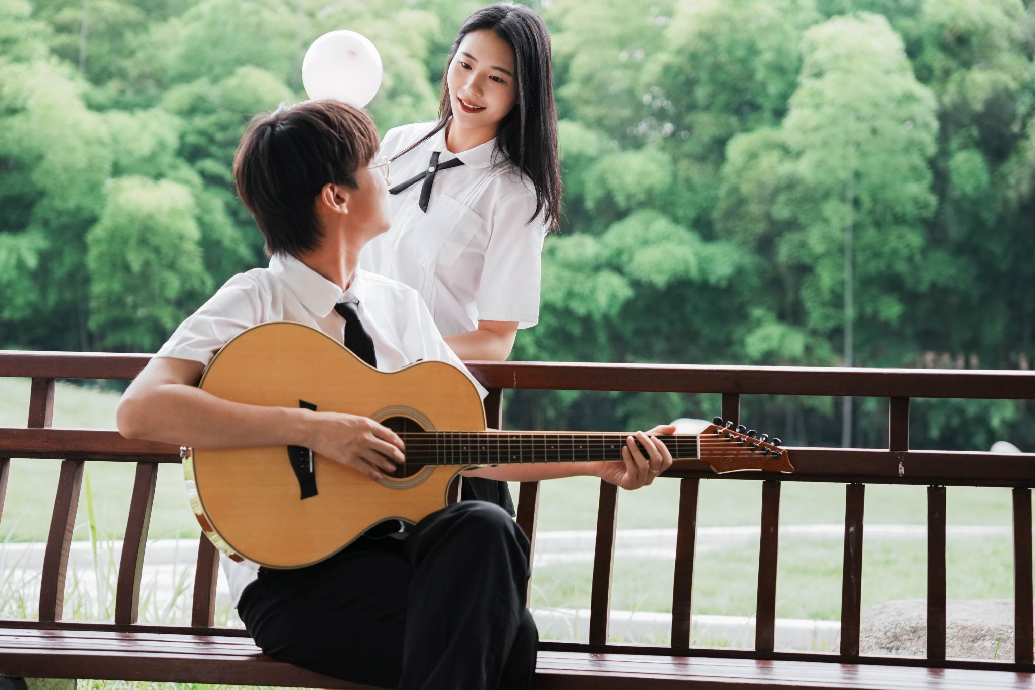 女生看男生弹吉他 张贝贝摄