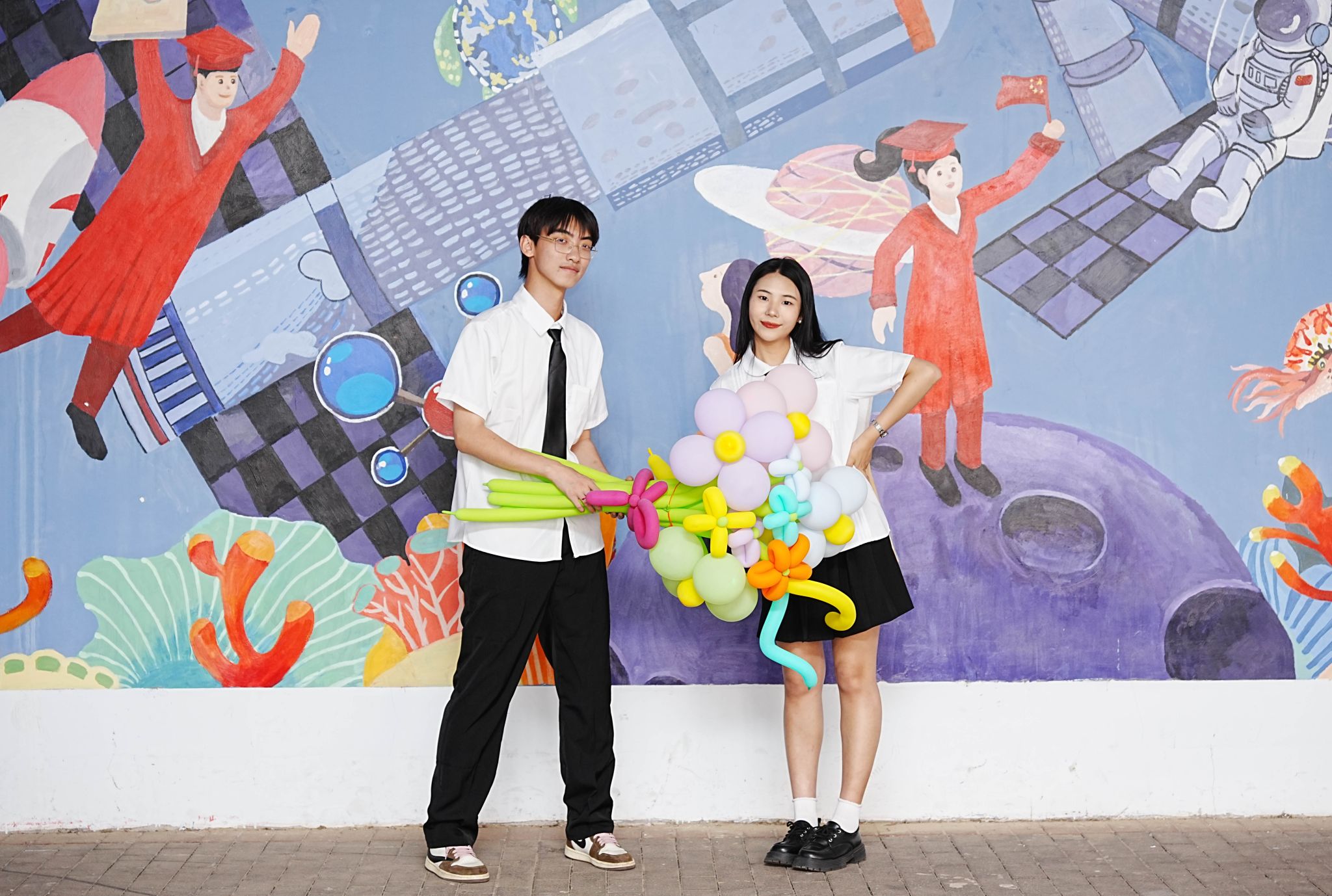 拿道具气球合影 张贝贝摄