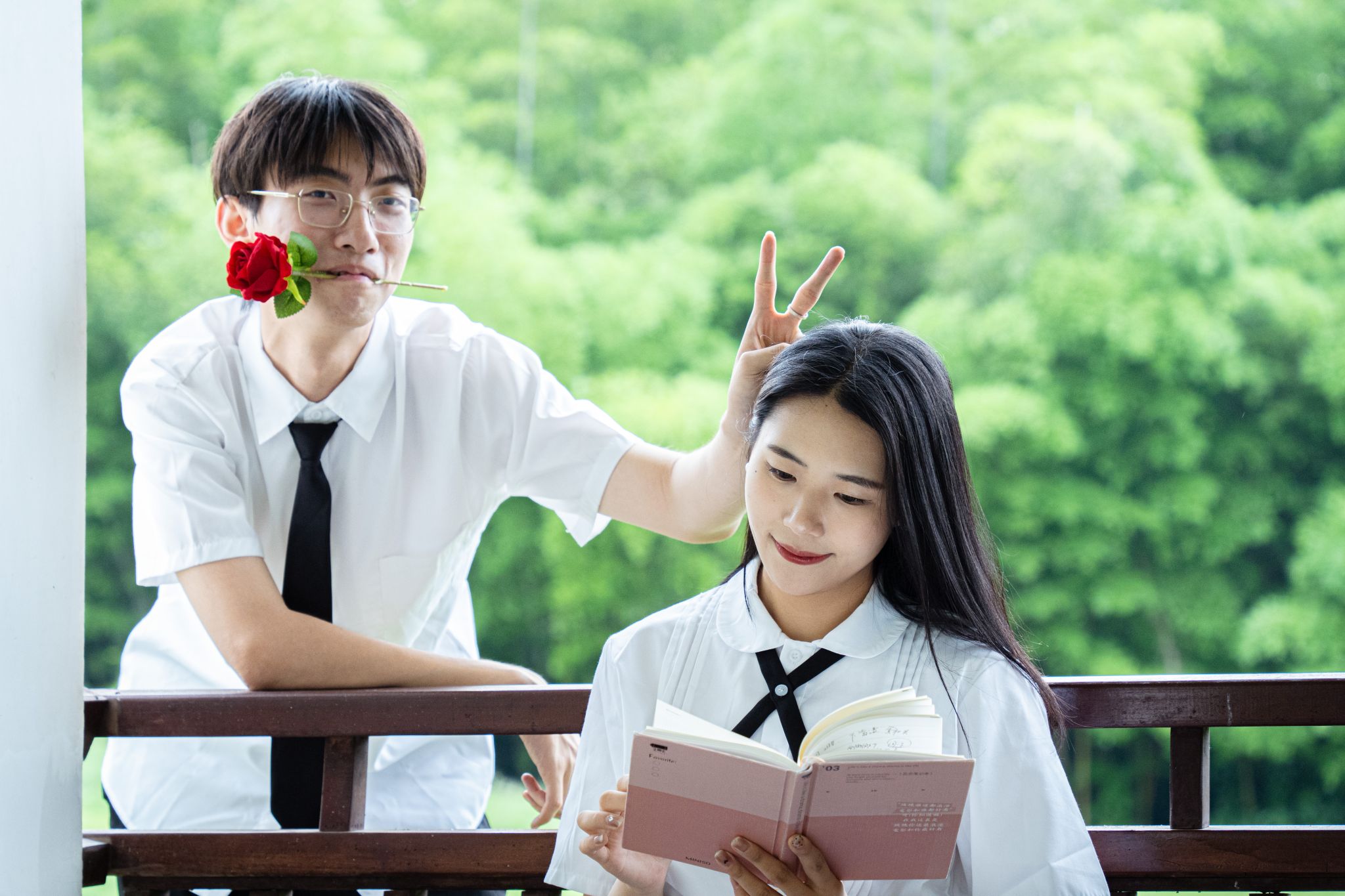 男生看女生读书 张贝贝摄