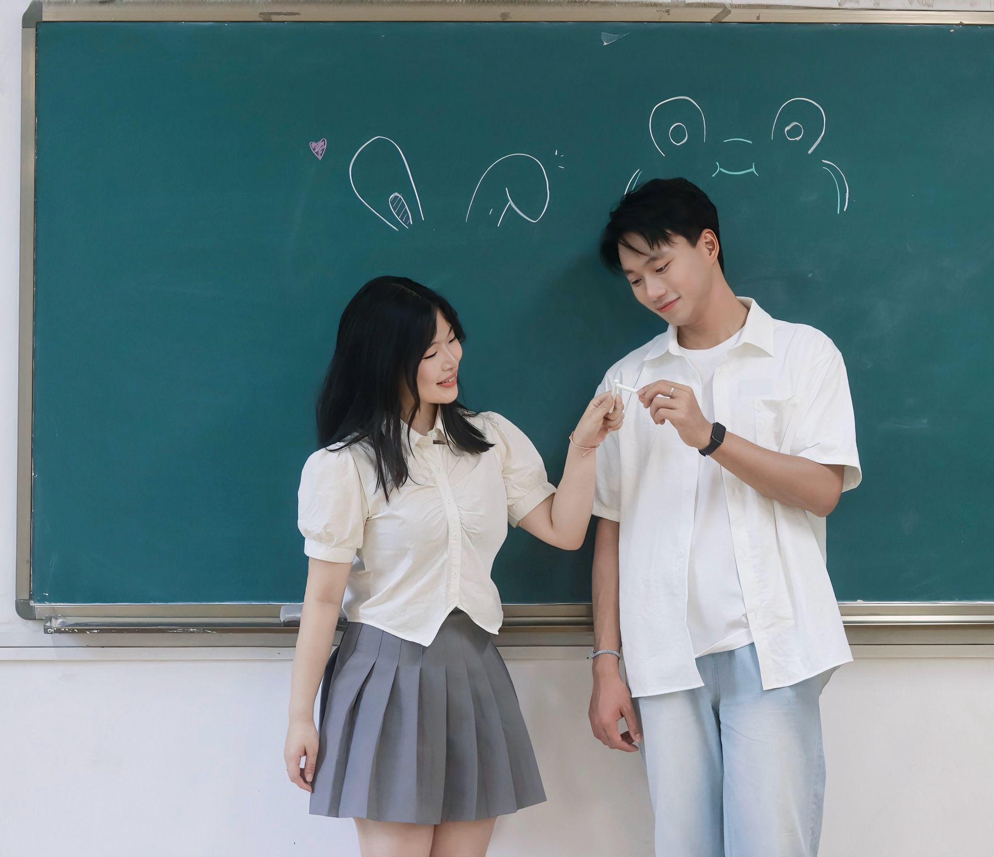 在教室黑板上画画合照 张贝贝摄