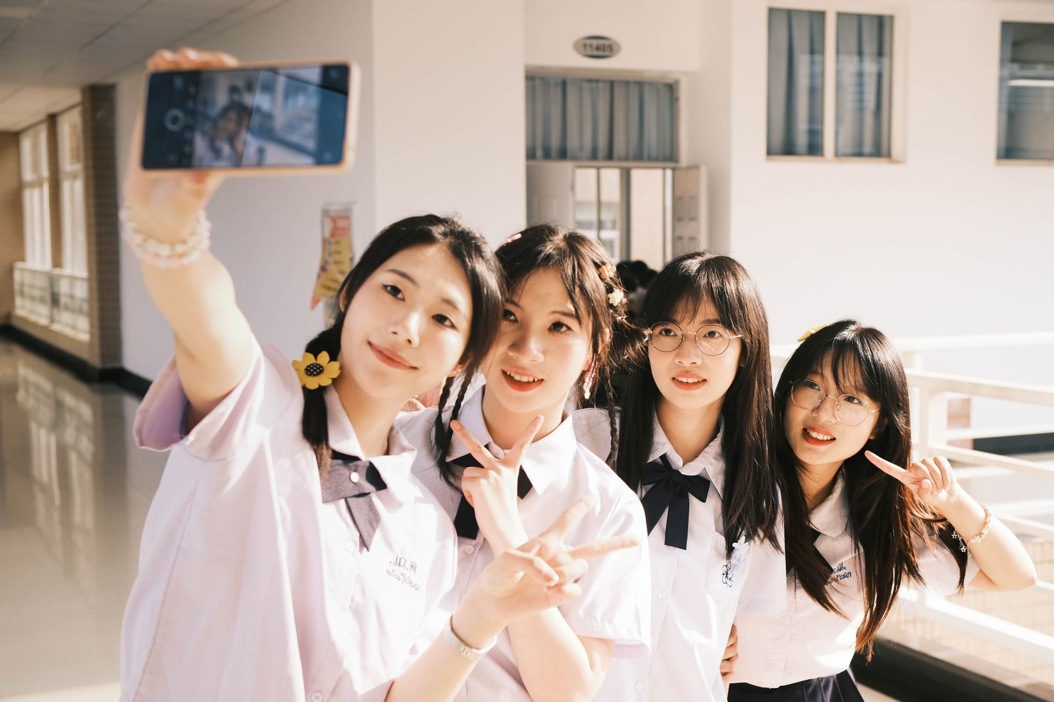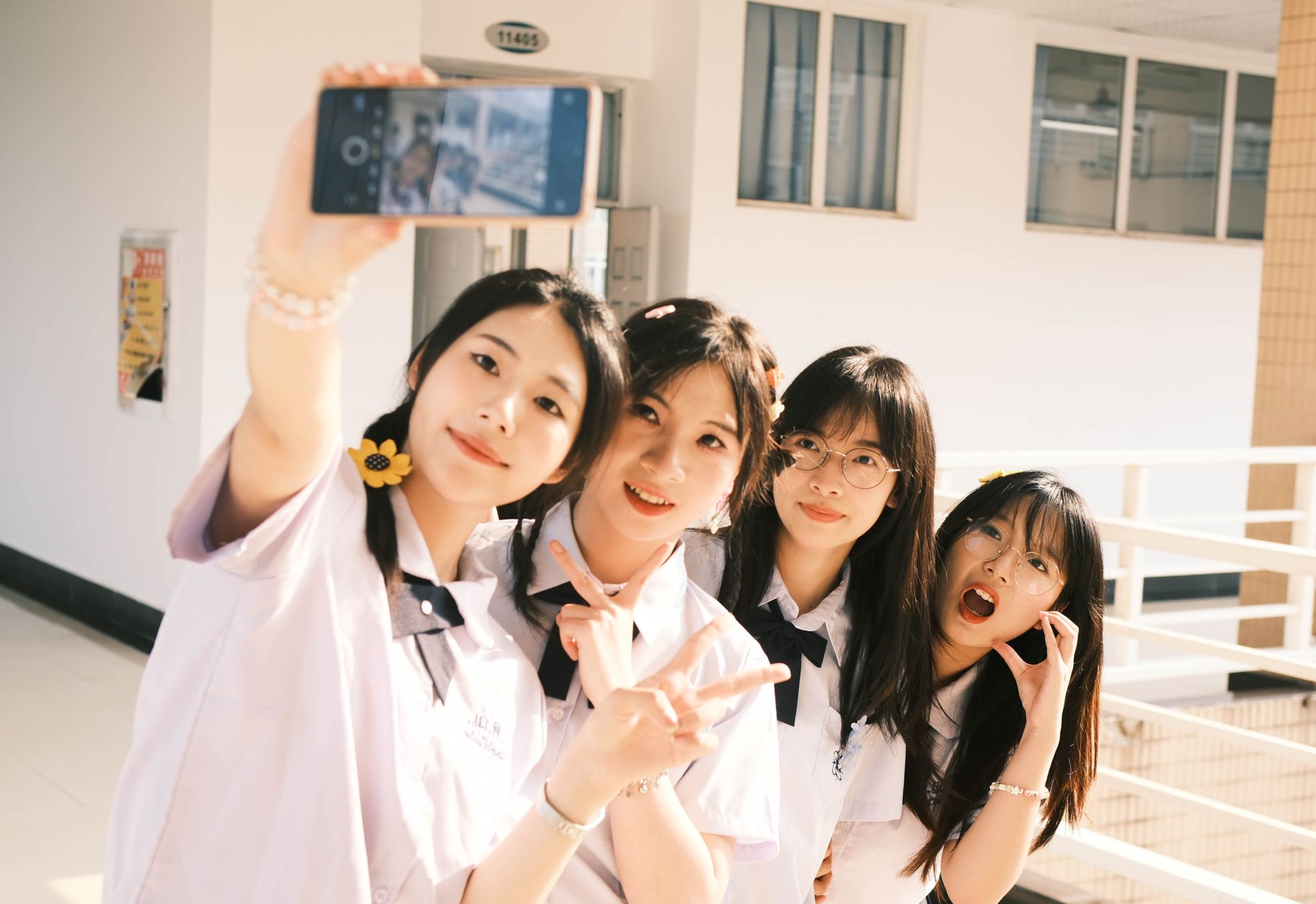 陈晓和他的大英班同学在自拍 唐治海摄