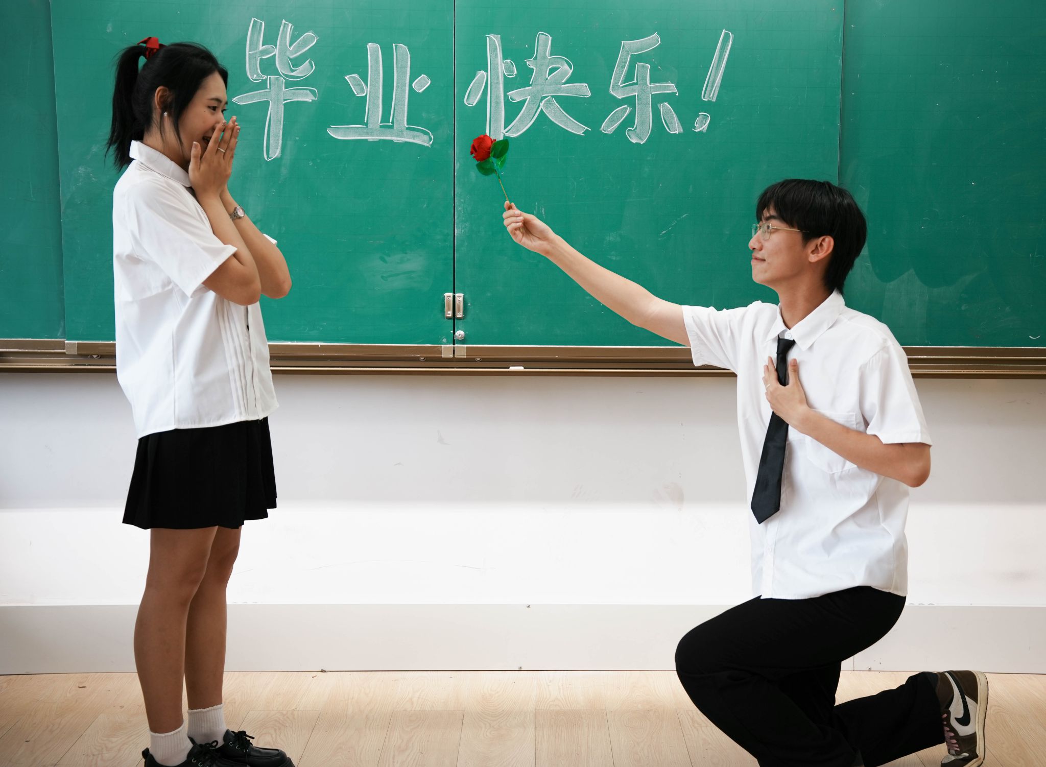 男生向女生献花 张贝贝摄