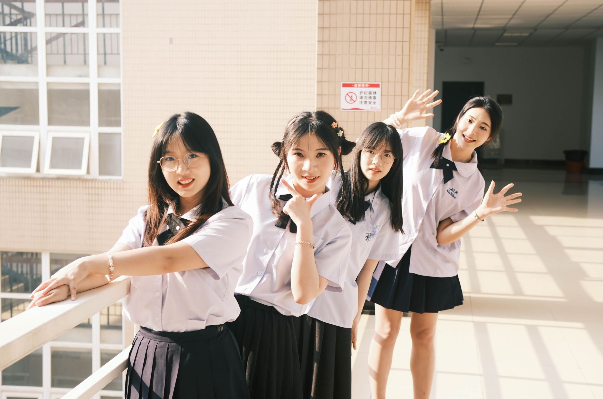 在走廊上合影 张贝贝摄