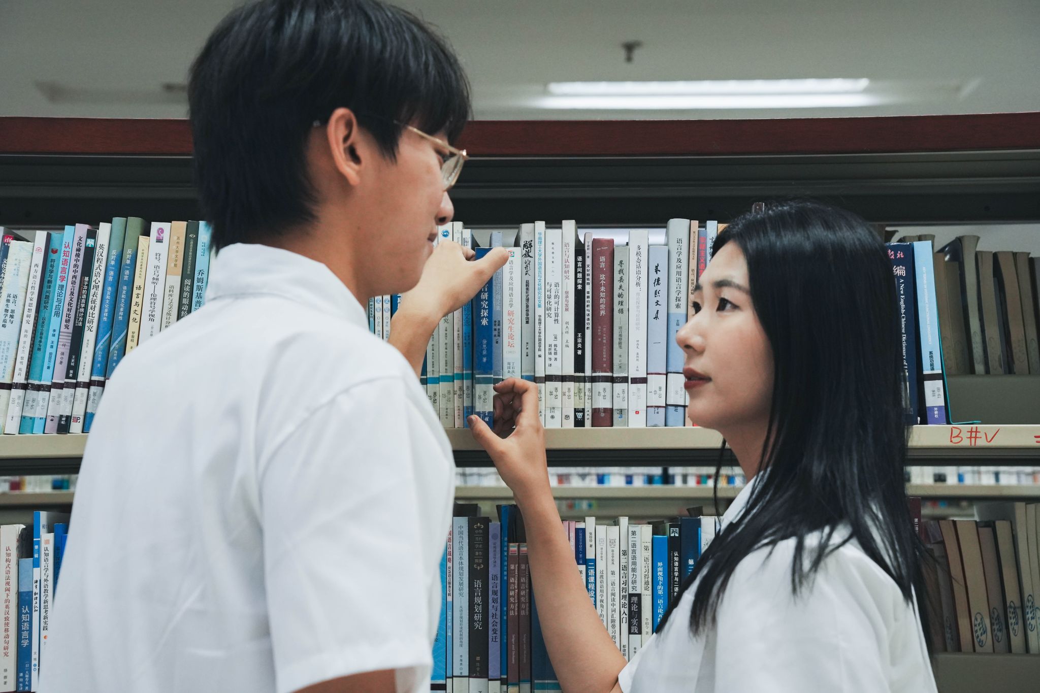 在图书馆拿了同一本书 张贝贝摄