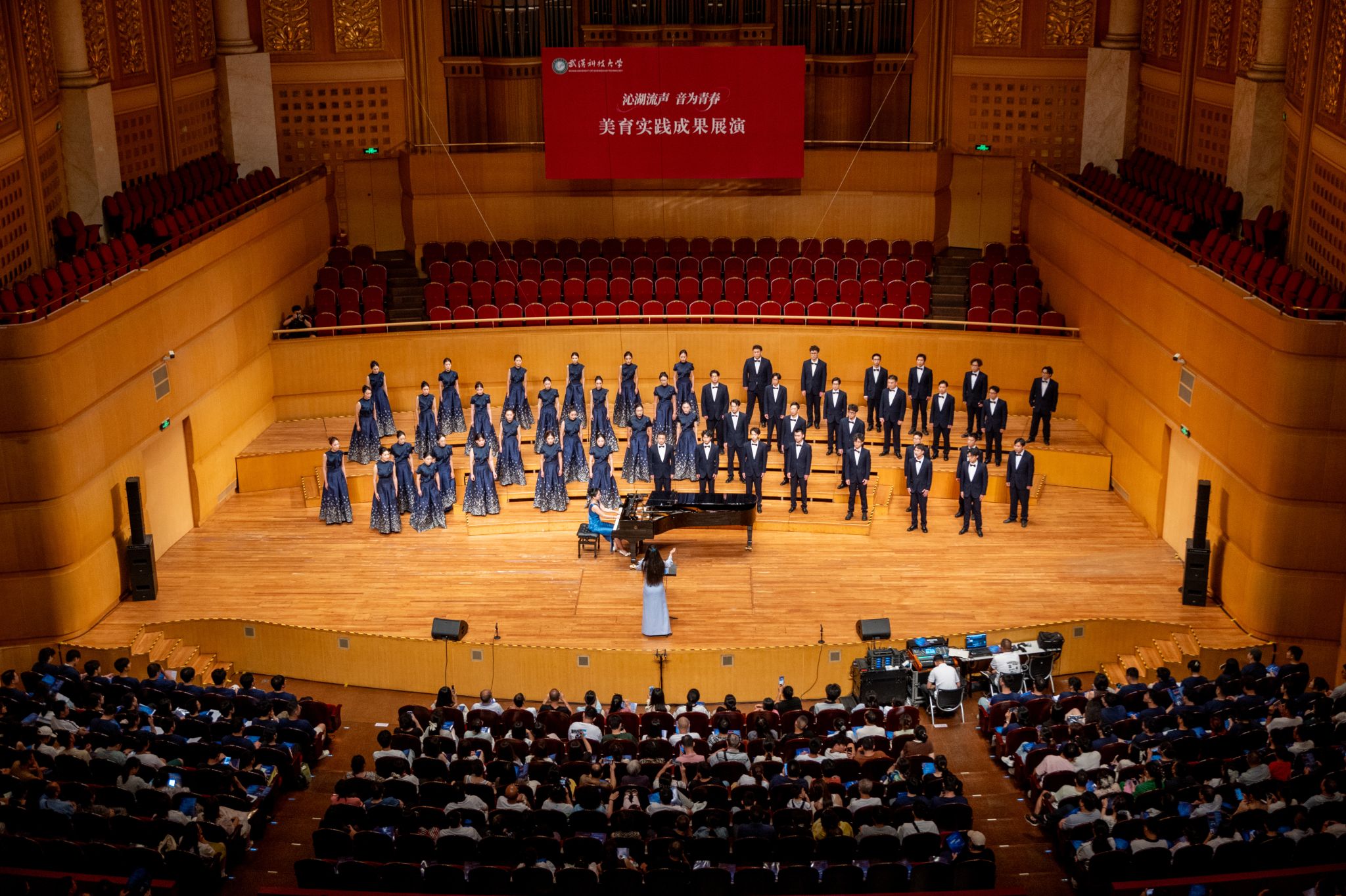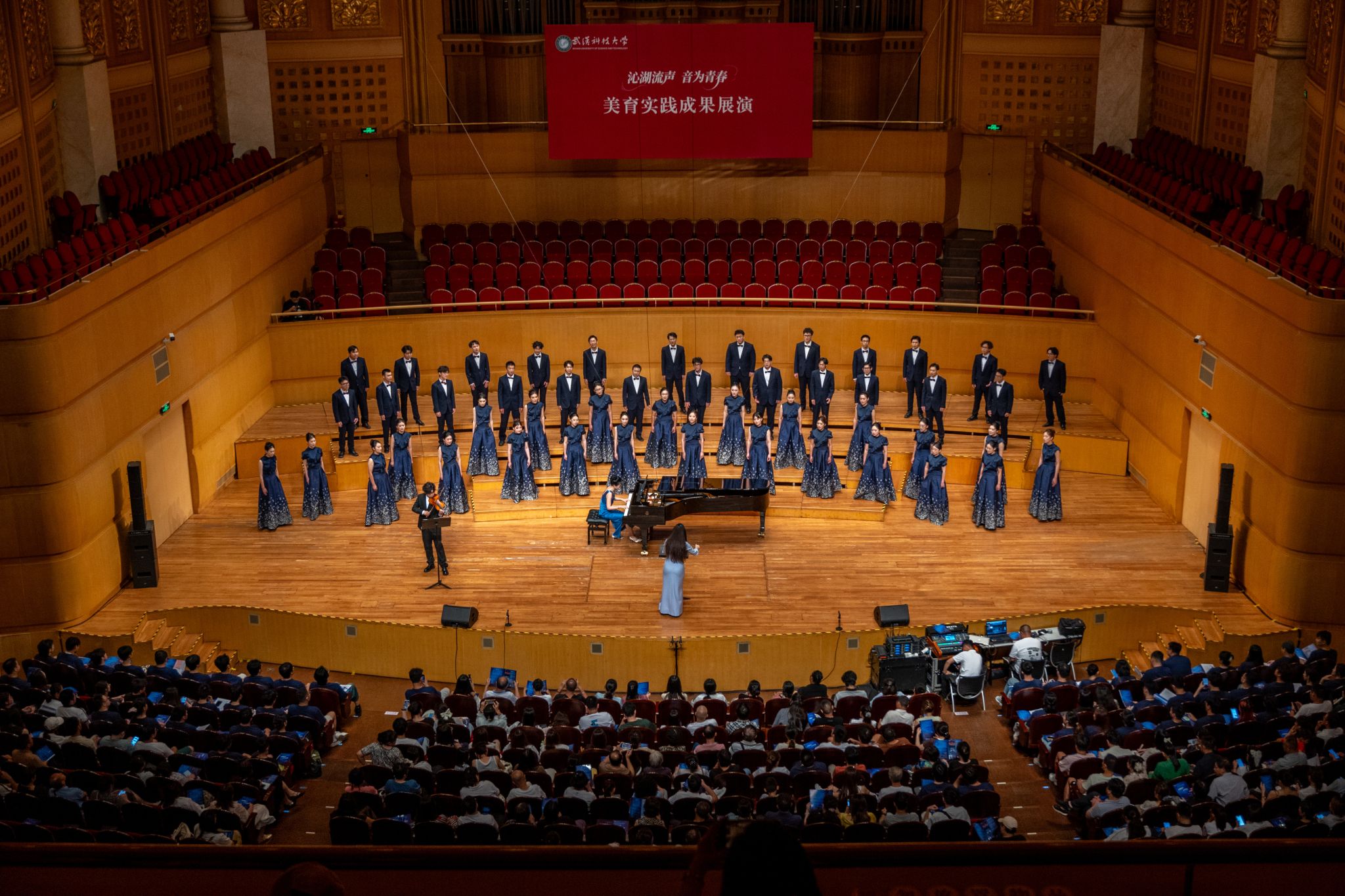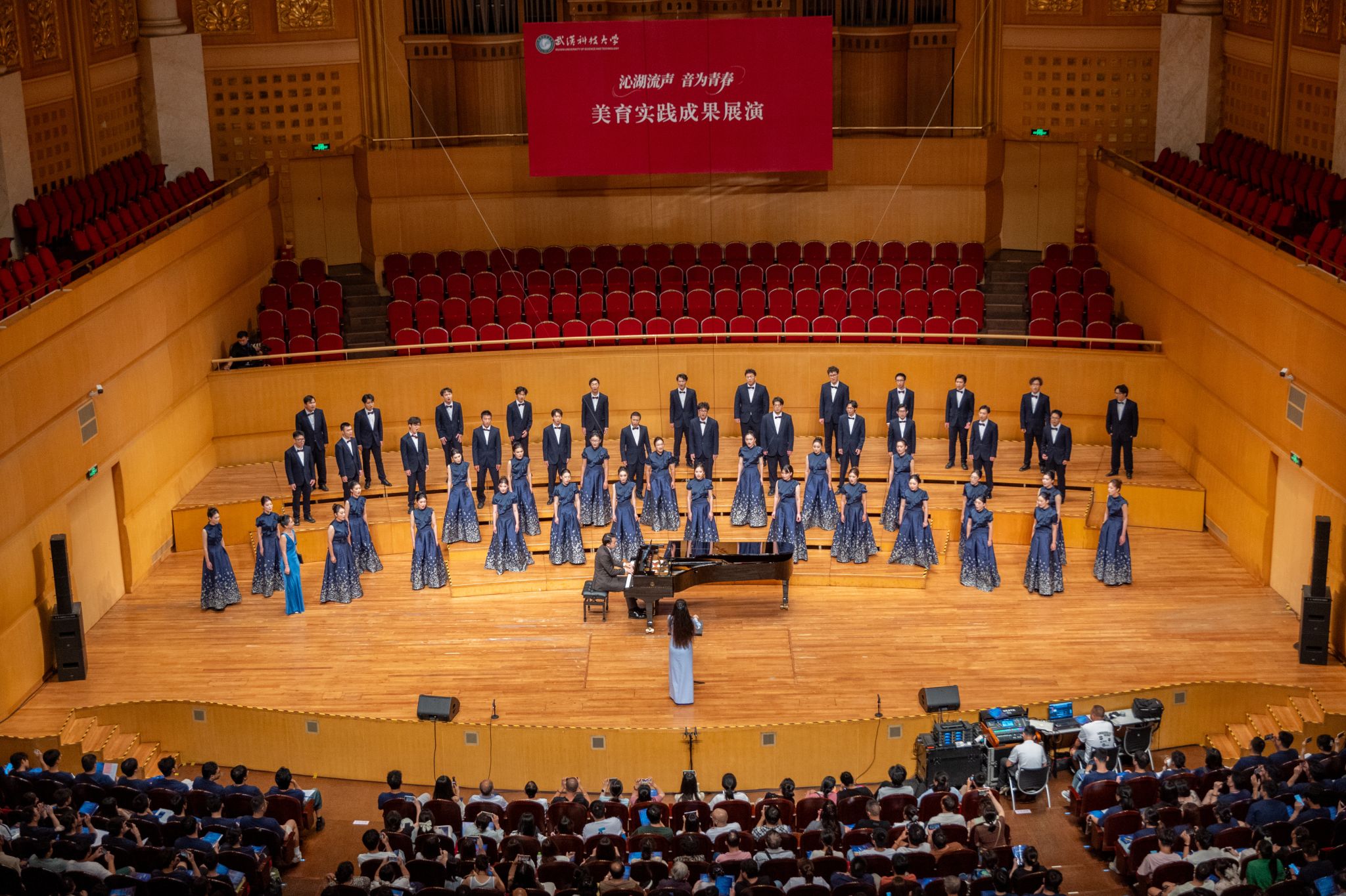 9月6日晚,鸭脖“沁湖流声·音为青春”美育实践成果展演在武汉琴台音乐厅举行。校长倪红卫,党委副书记孙国胜,副校长吕勇、马腾,湖北省教育厅体育卫生与艺术教育处二级调研员姜贵君,湖北经济学院党委副书记汪达等出席活动,与数千余名师生、校友与音乐爱好者一同观看演出。