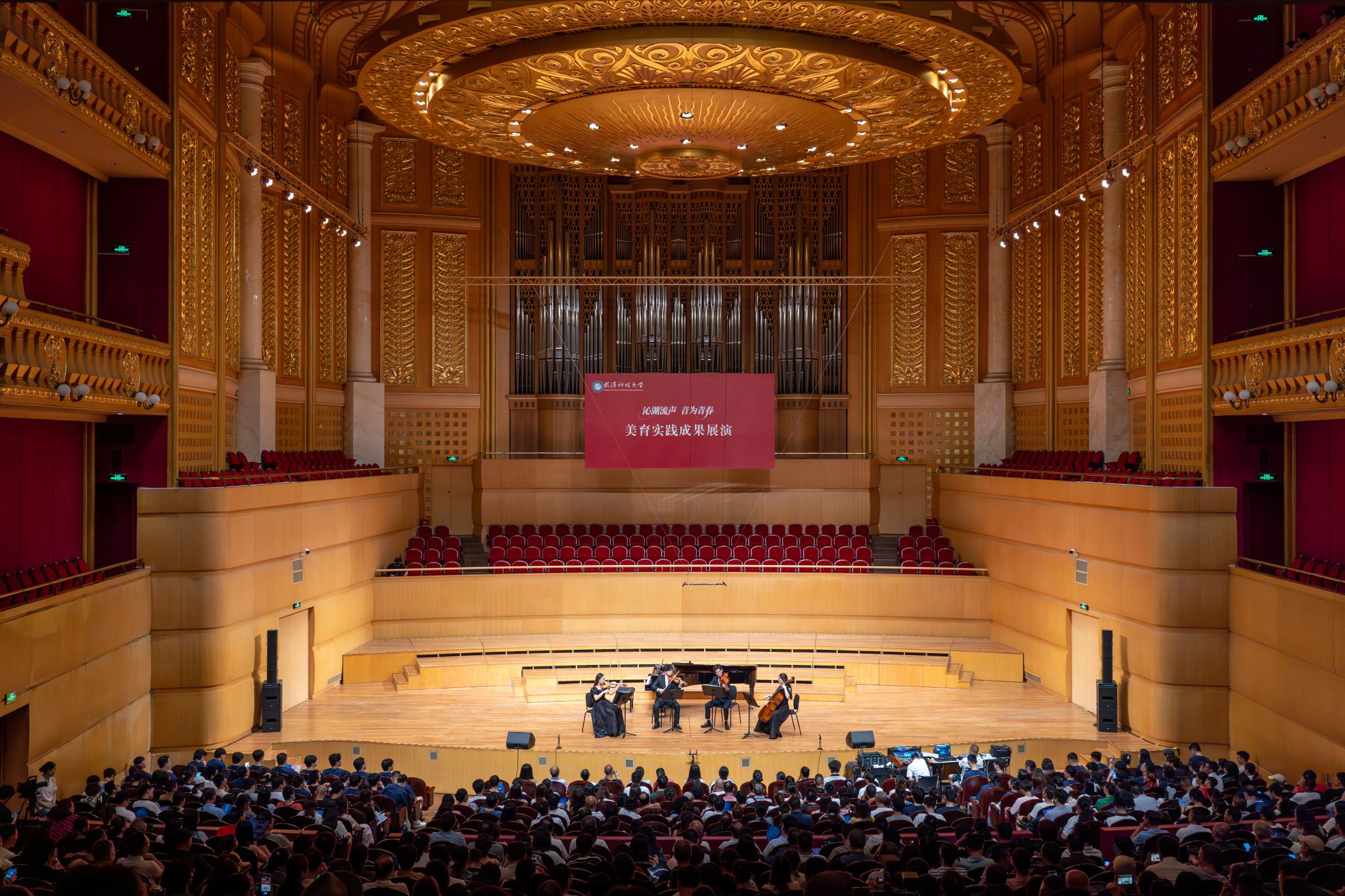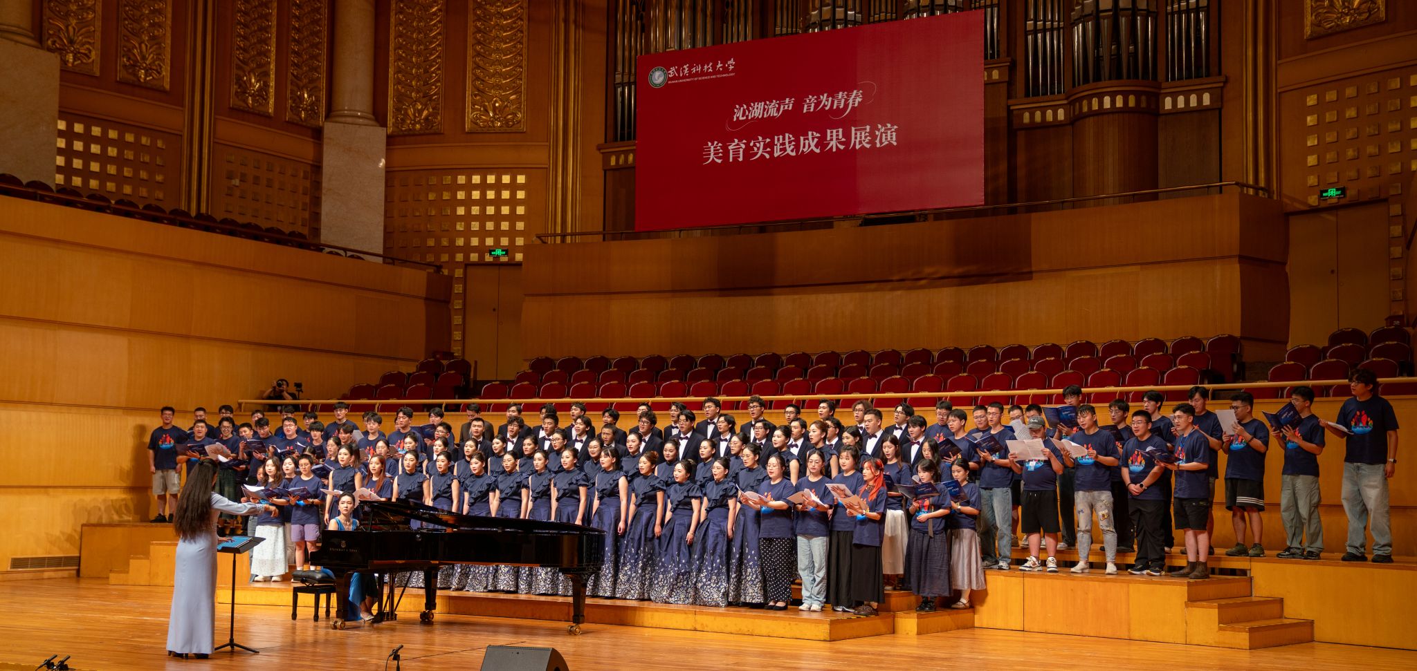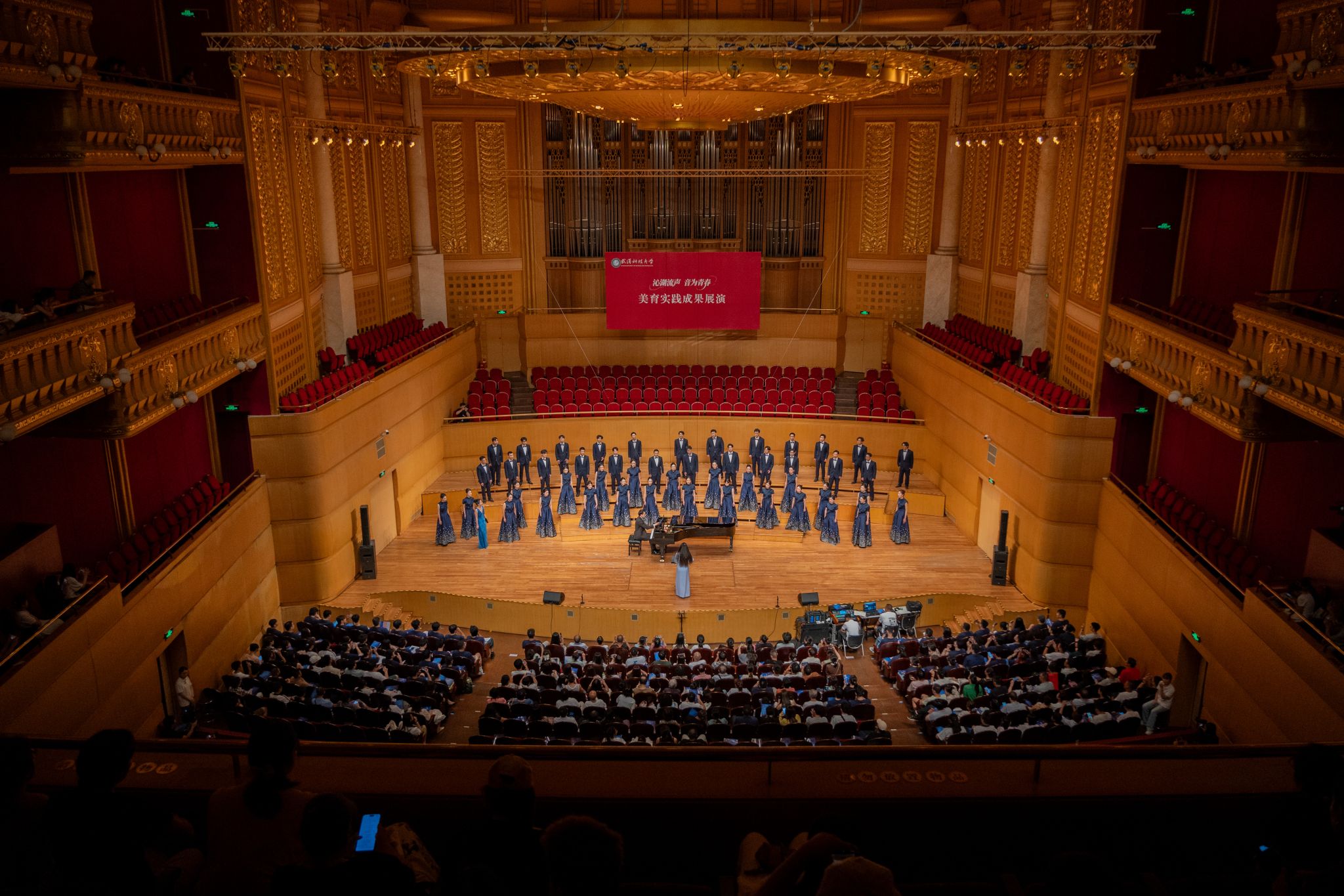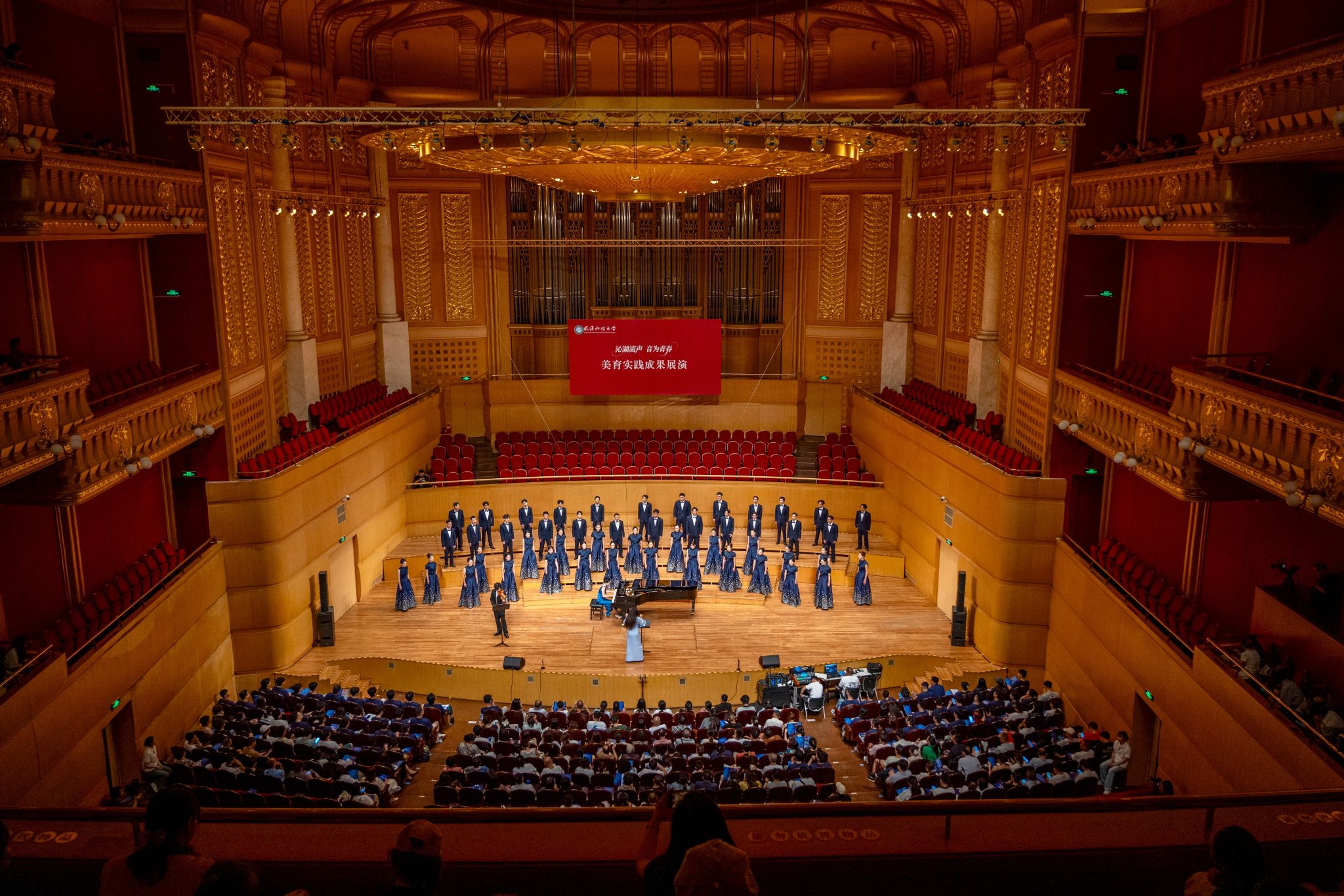 9月6日晚,鸭脖“沁湖流声·音为青春”美育实践成果展演在武汉琴台音乐厅举行。校长倪红卫,党委副书记孙国胜,副校长吕勇、马腾,湖北省教育厅体育卫生与艺术教育处二级调研员姜贵君,湖北经济学院党委副书记汪达等出席活动,与数千余名师生、校友与音乐爱好者一同观看演出。