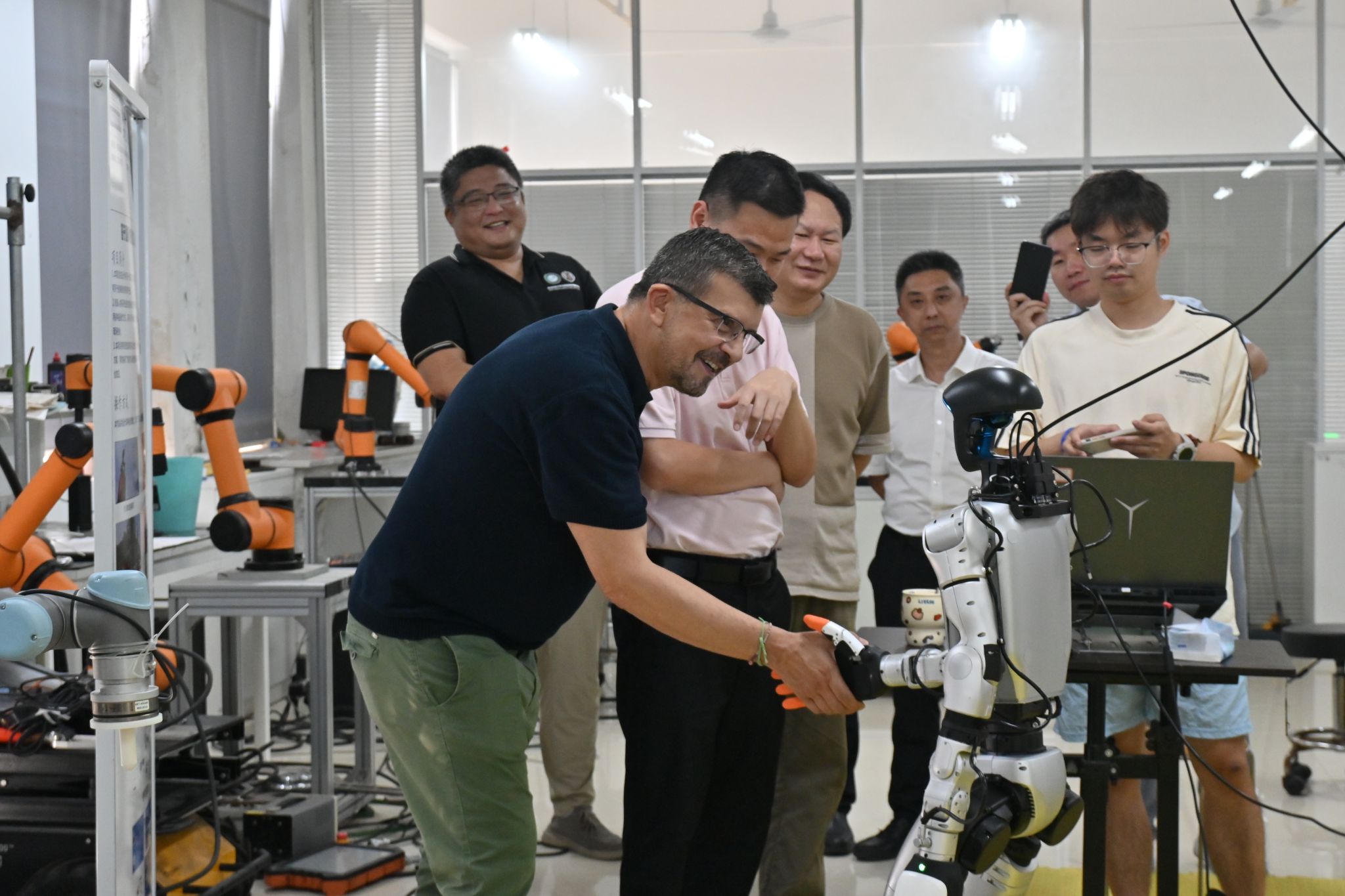 2025年9月15日下午2点至2点40分,鸭脖马德里康普顿斯学院机器人工程专业的全体学生前往工程实践创新中心进行参观学习。到达后,学生被分为三组,由中心的三位教师分别带领,按照既定的三条不同路线进行参观。参观过程中,学生们深入了解了工程实践创新中心的各类设施和实践项目,包括机械加工设备、智能控制系统、工业机器人等,并聆听了教师们关于设备操作、技术创新以及工程实践应用的详细讲解。此次参观不仅加深了学生们对专业知识的理解,也为他们在机器人工程领域的实践能力培养奠定了基础。(王铭浩)