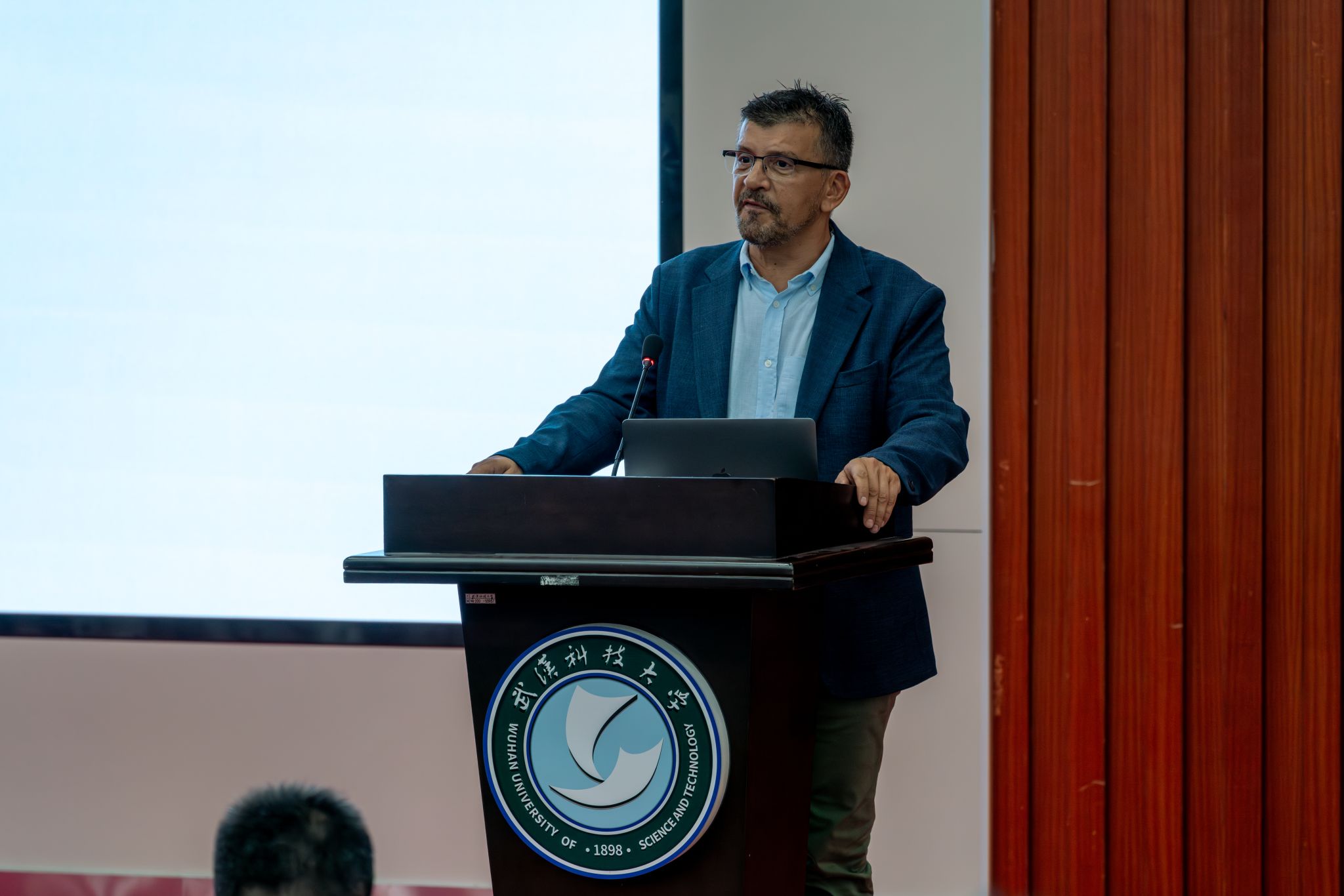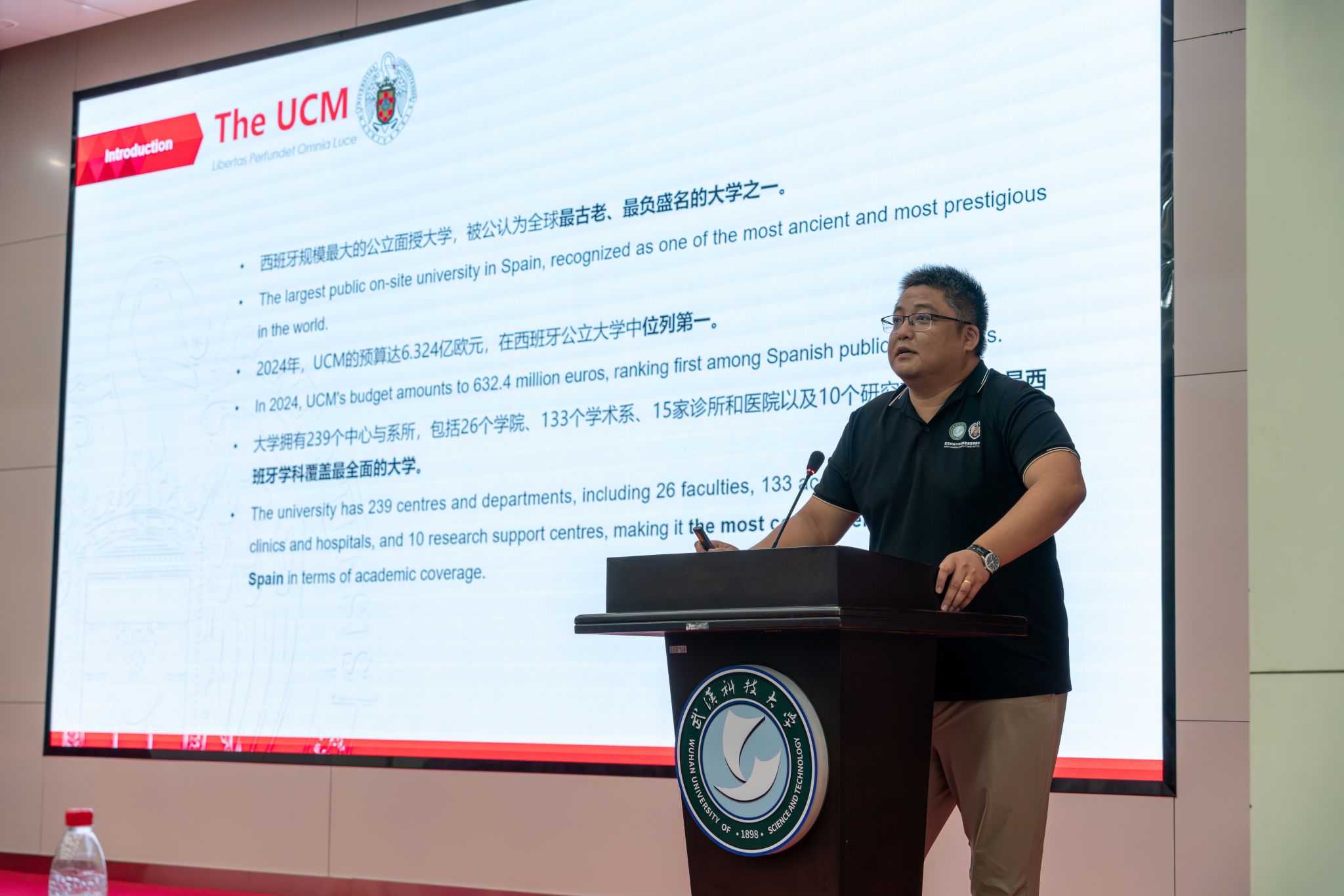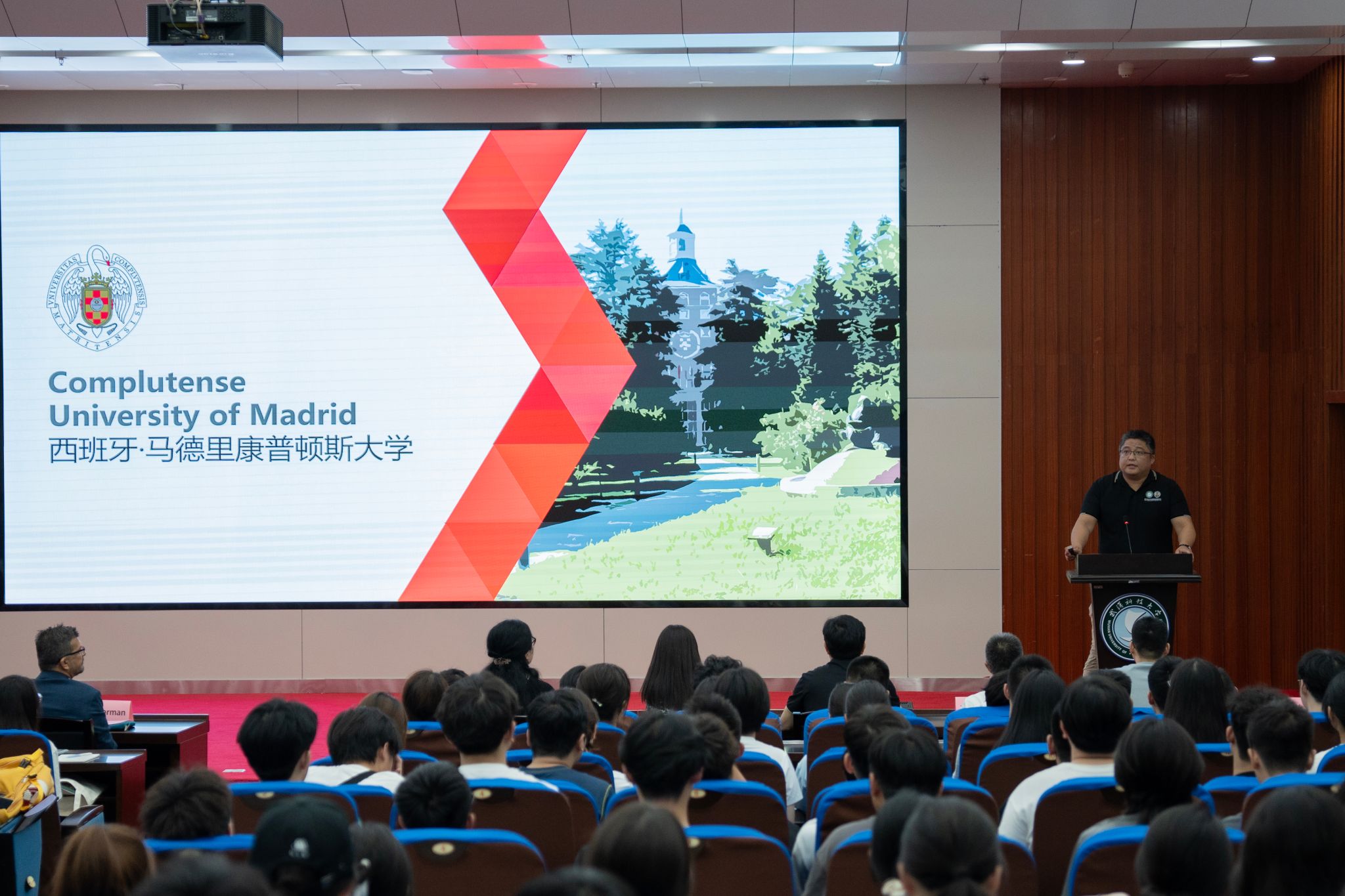yabo鸭脖官网马德里康普顿斯学院外方副院长Alonso Tang先生介绍学校 王铭浩摄