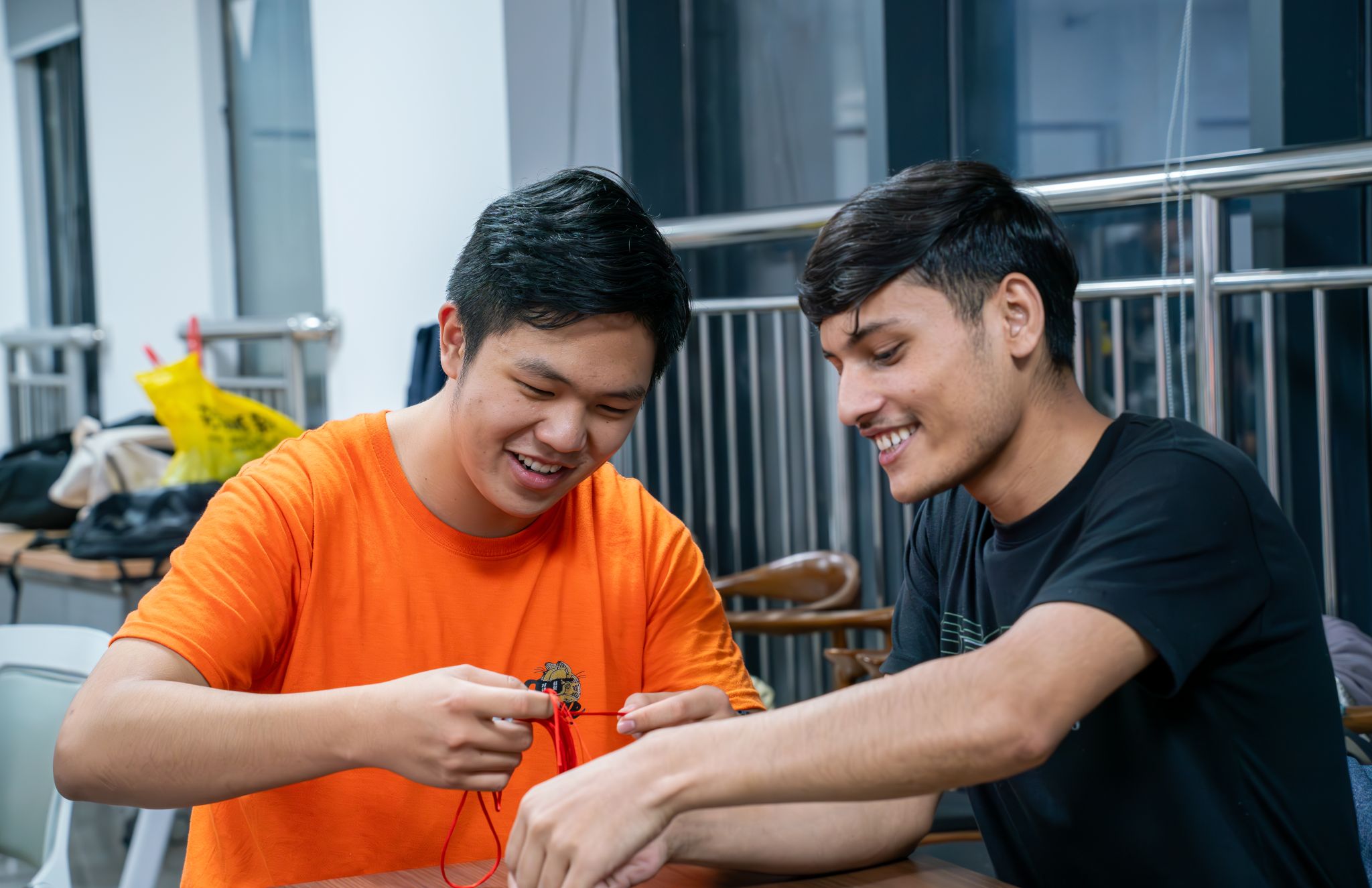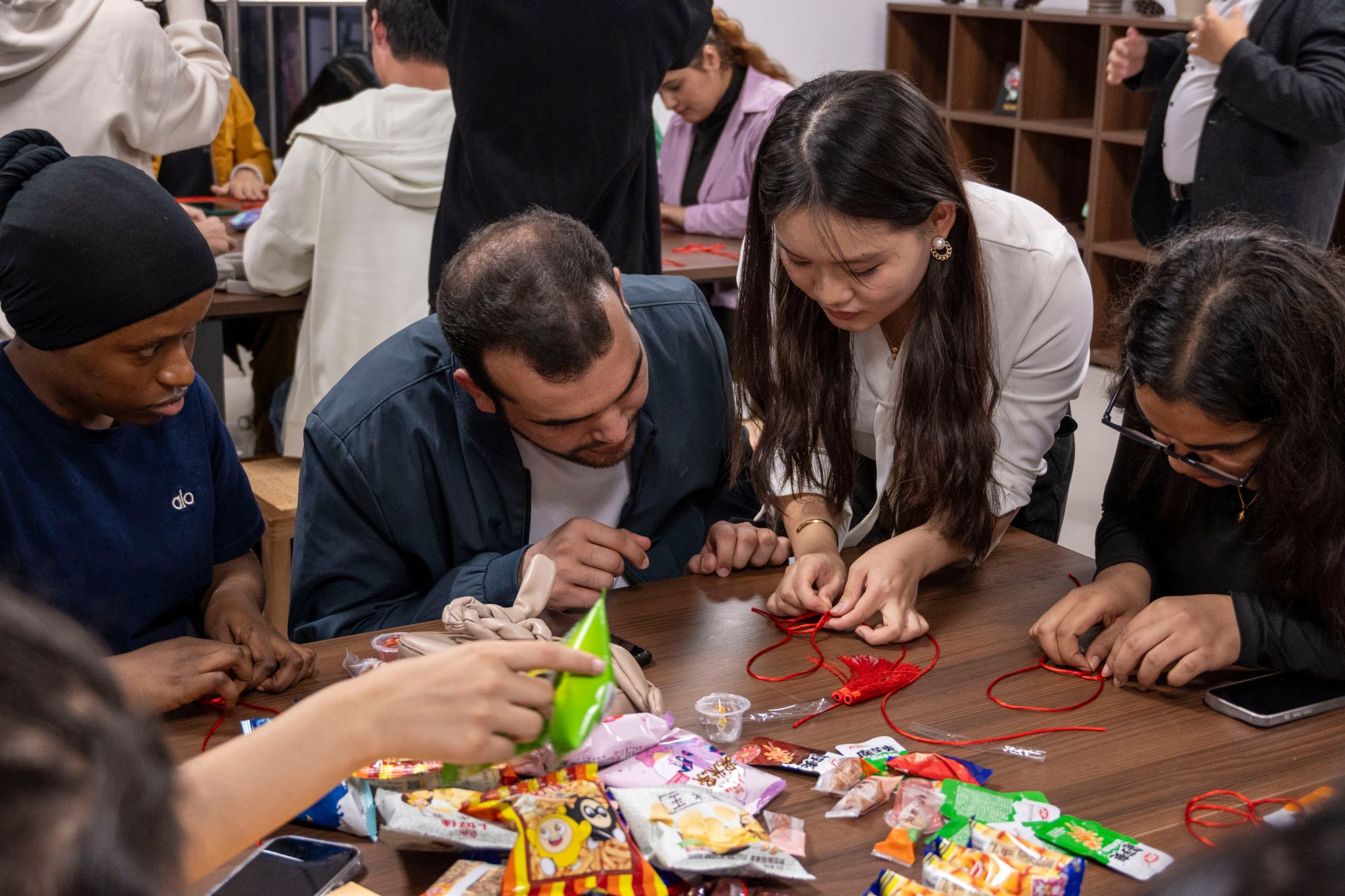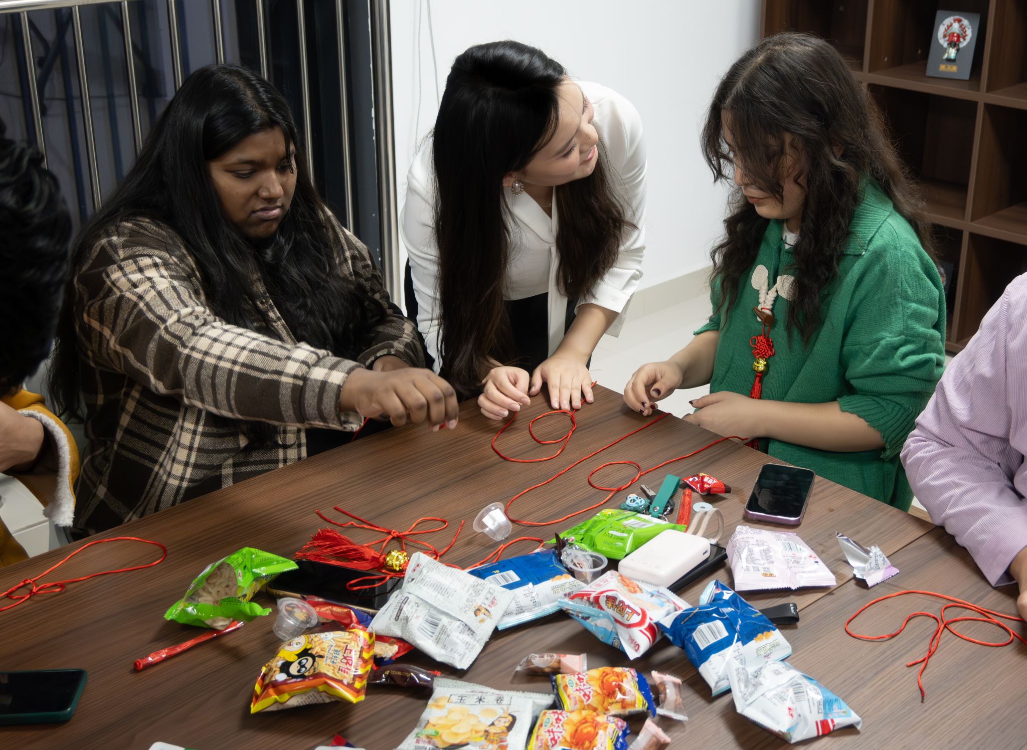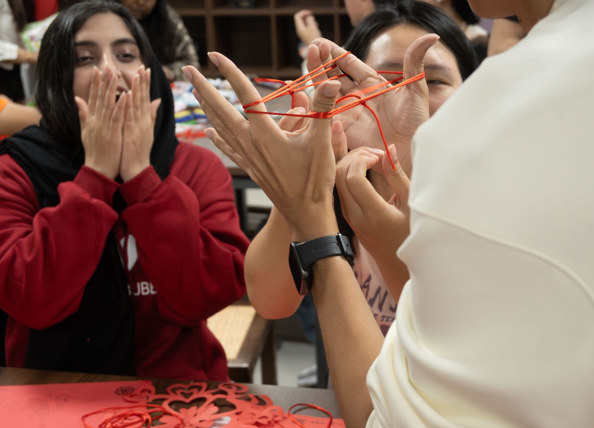 留学生和中国学生一起翻花绳 宋晓雅摄