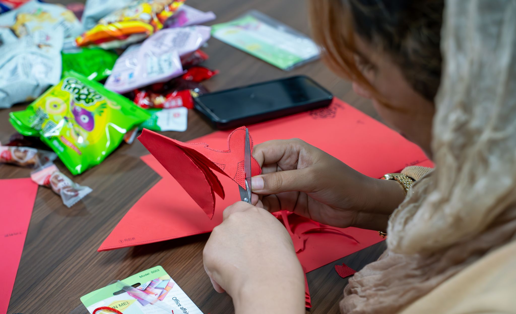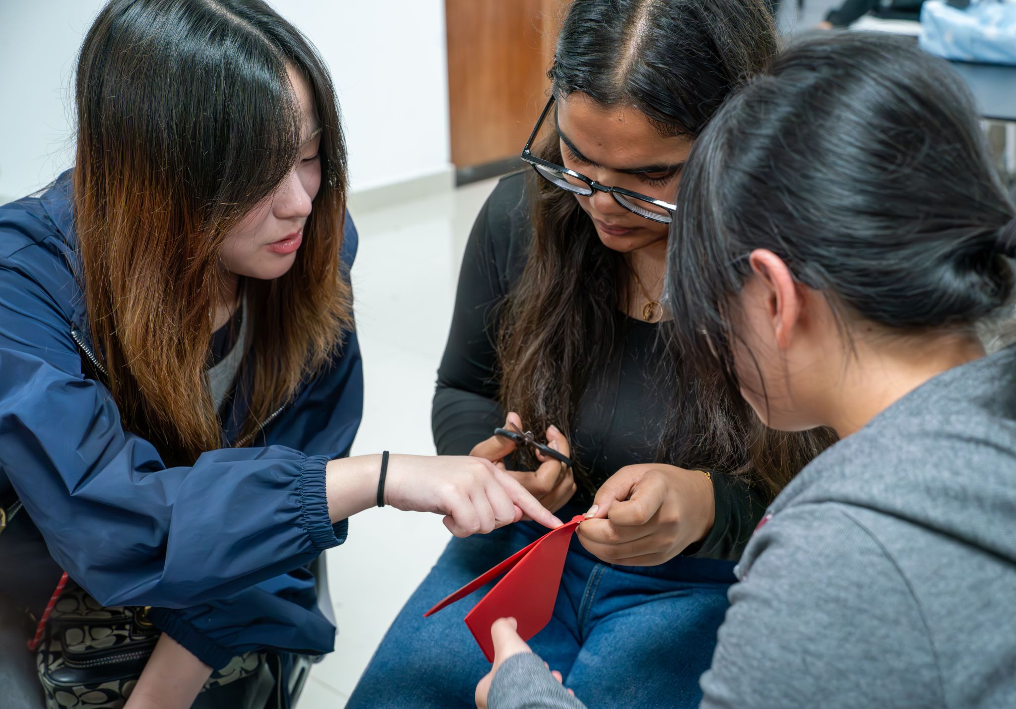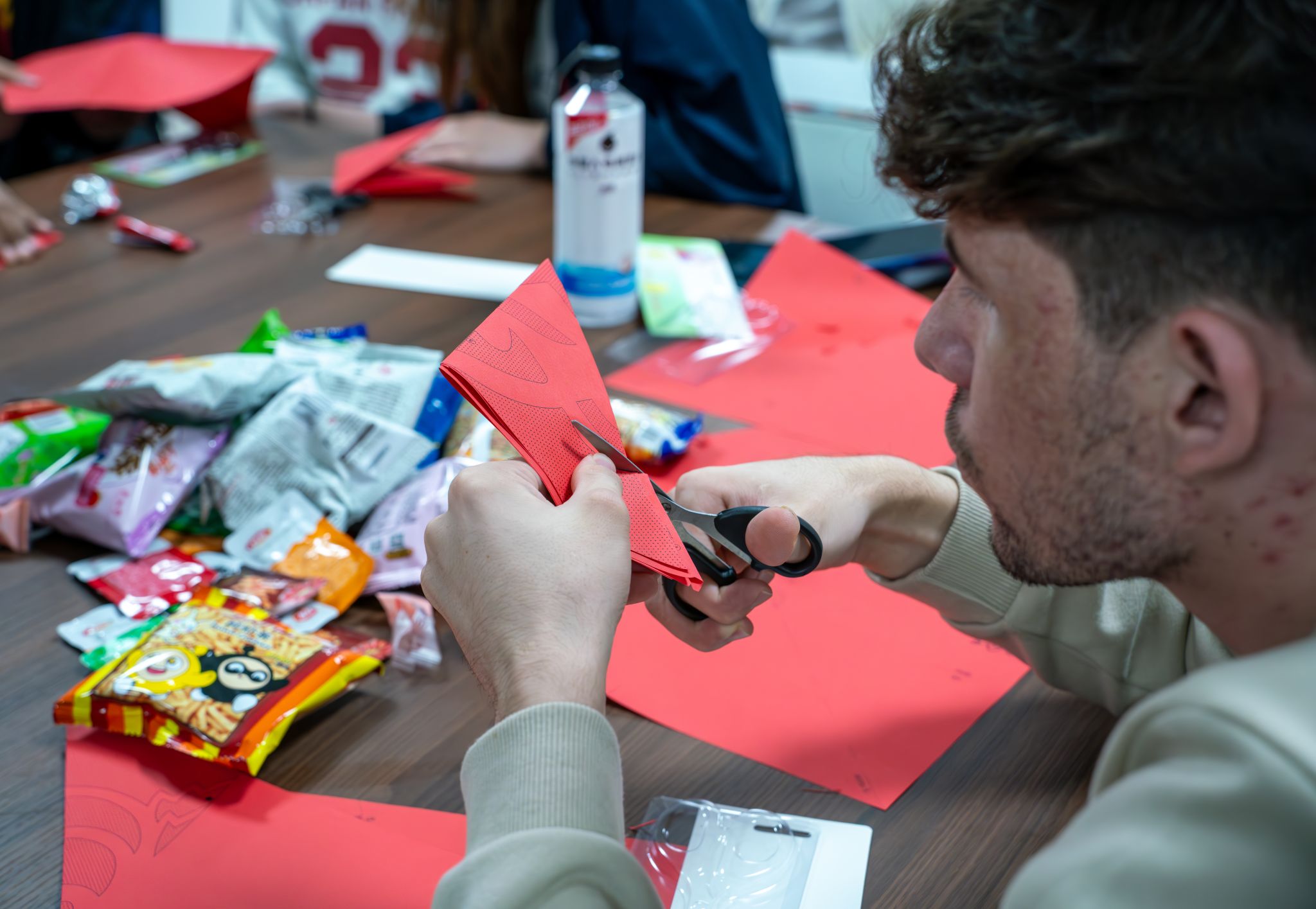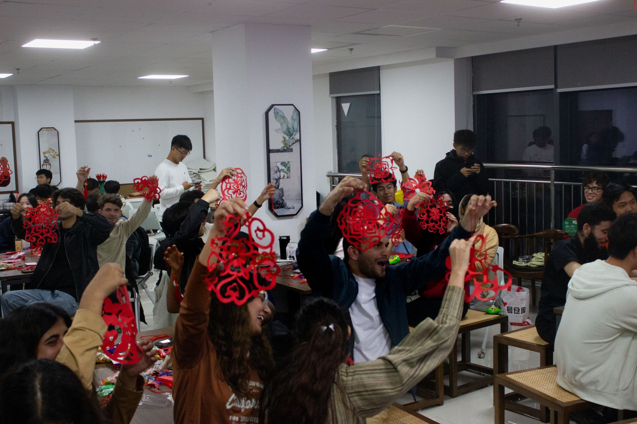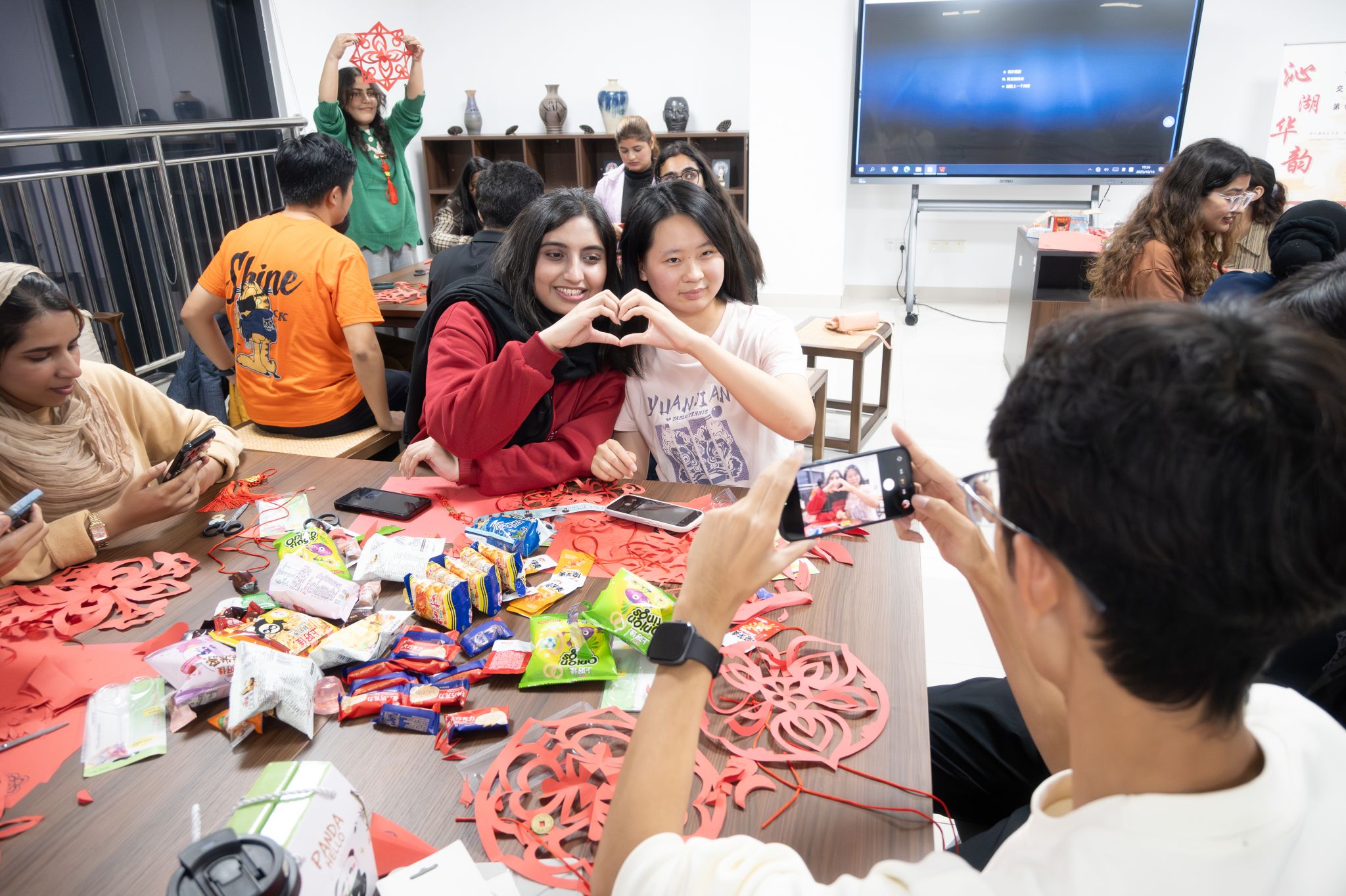 留学生和中国学生一起翻花绳 宋晓雅摄