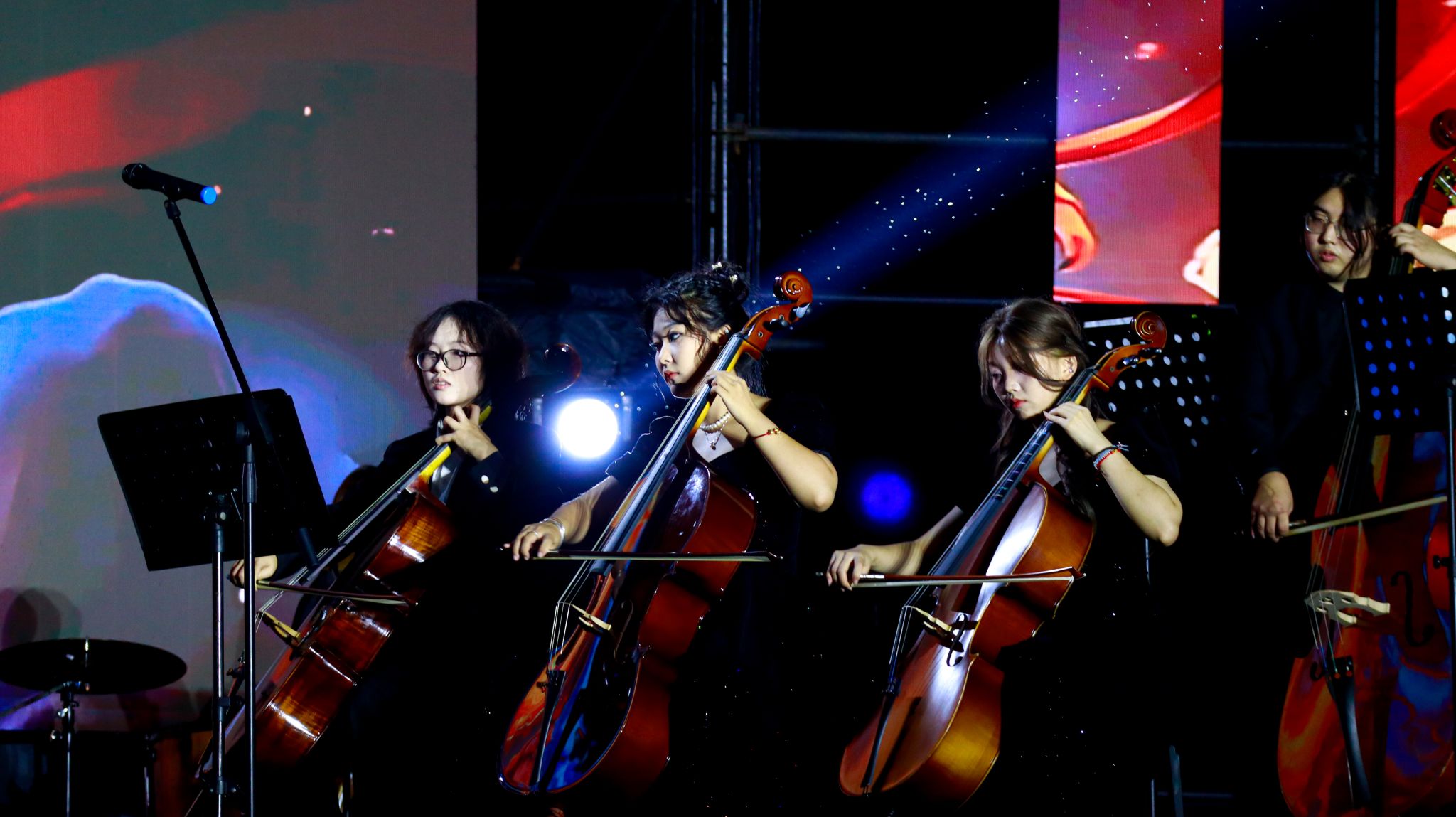 10月17日晚,鸭脖在南园操场举行了2025年yabo鸭脖官网美育思政课暨新生文艺晚会,活动分为三个篇章、共14个节目,节目形式涵盖乐队合奏、舞蹈、朗诵等多种形式,为2025级新生提供了良好的校园氛围,使他们更快融入校园。(王翔宇)