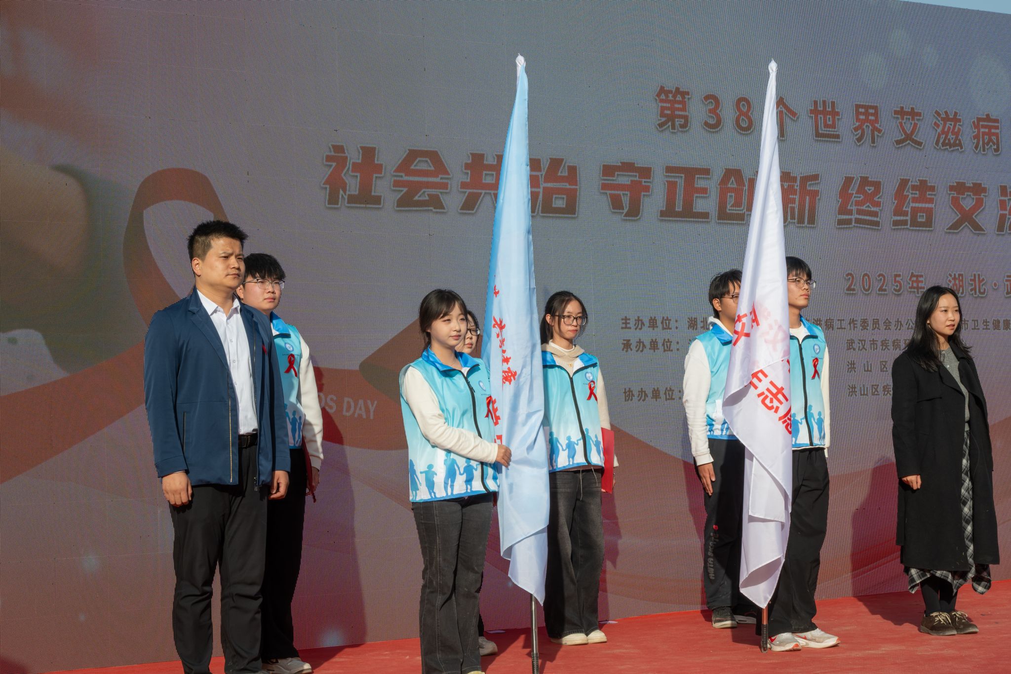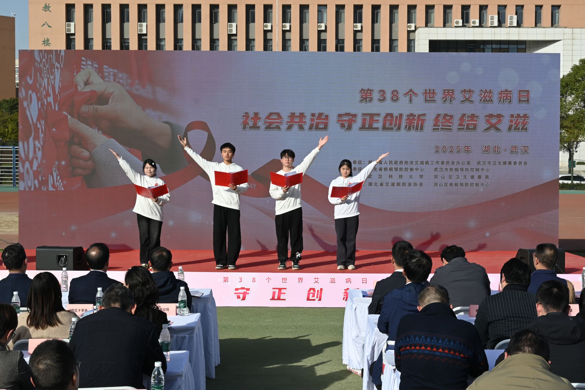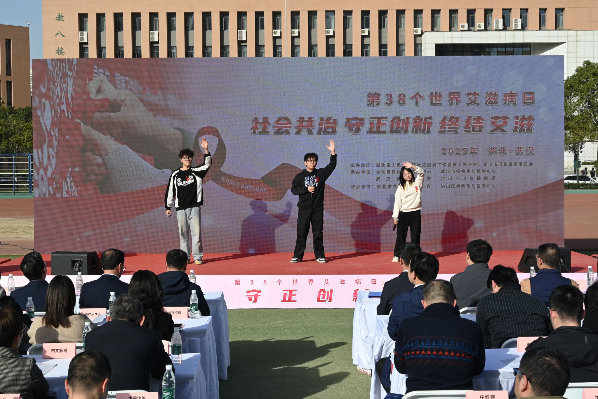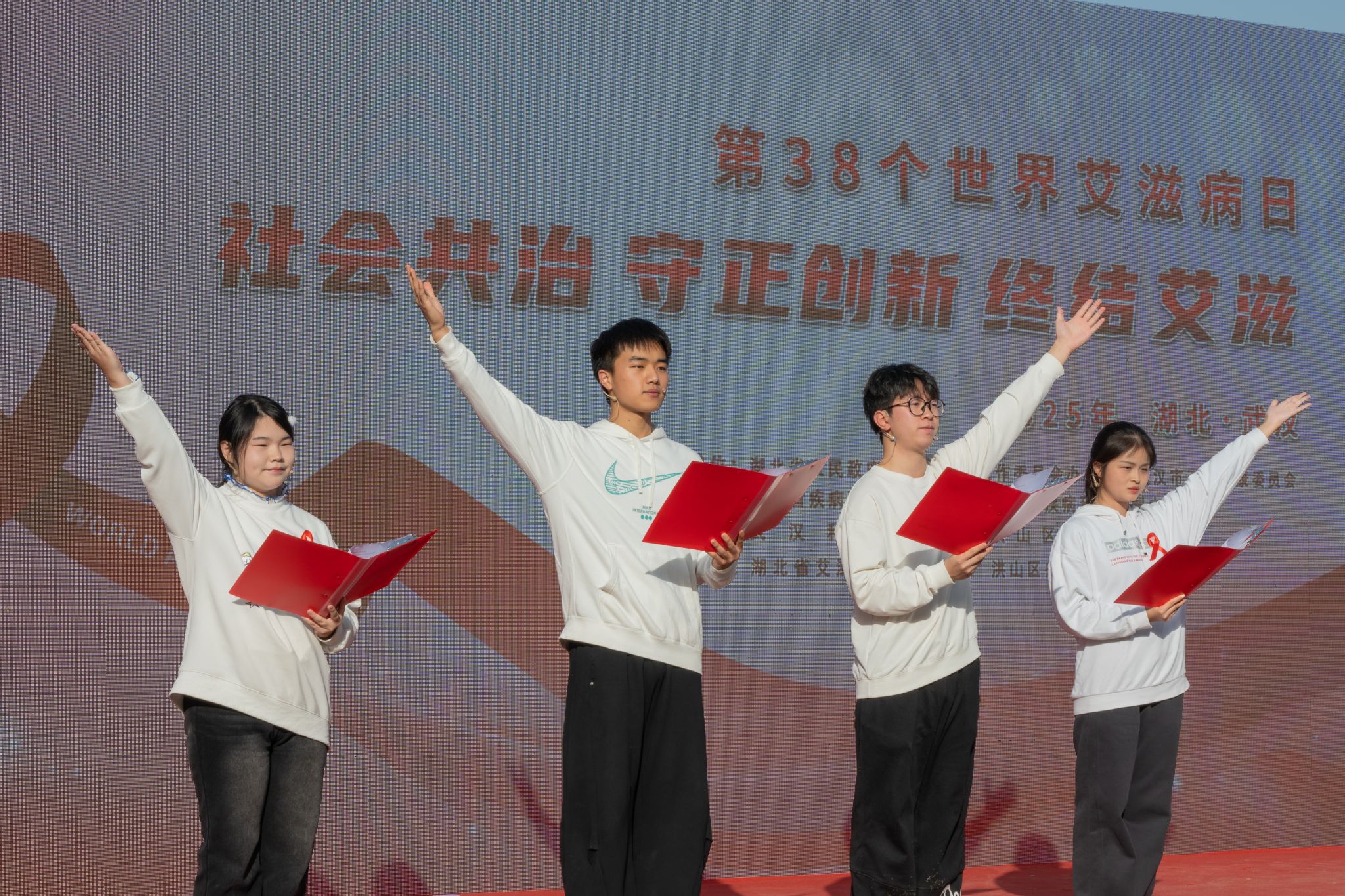 11月27日,湖北省第 38 个“世界艾滋病日”主题宣传活动在鸭脖黄家湖校区南区体育场举办。鸭脖、市卫健委、省政府防艾办和其他相关单位负责人参加启动仪式。启动仪式后,高校学生代表宣读倡议书,团省委、团市委为志愿者授旗。湖北省疾病预防控制中心等单位、企业在现场搭建展台,为师生们答疑解惑、提供健康建议。(孙正恒)