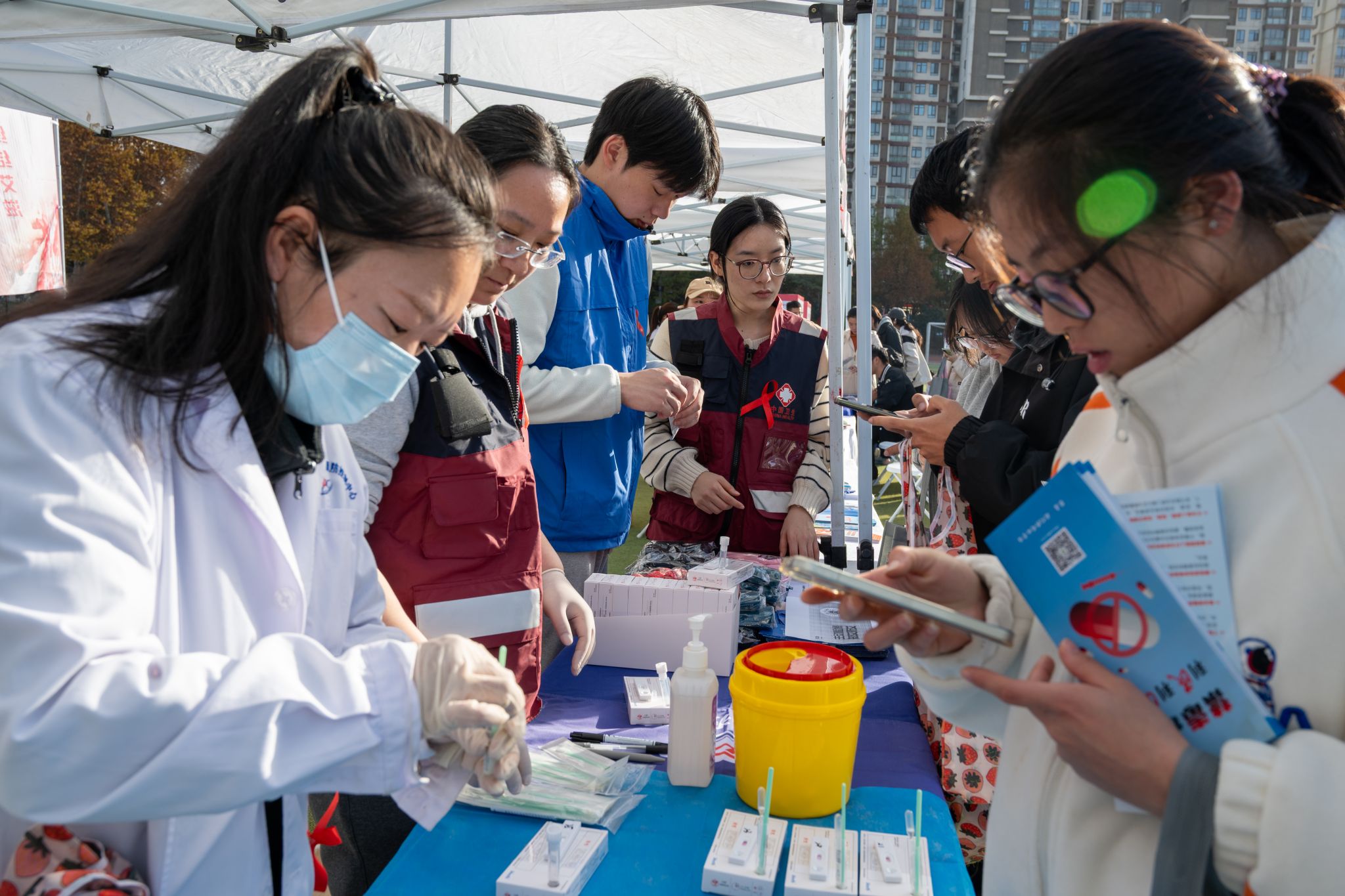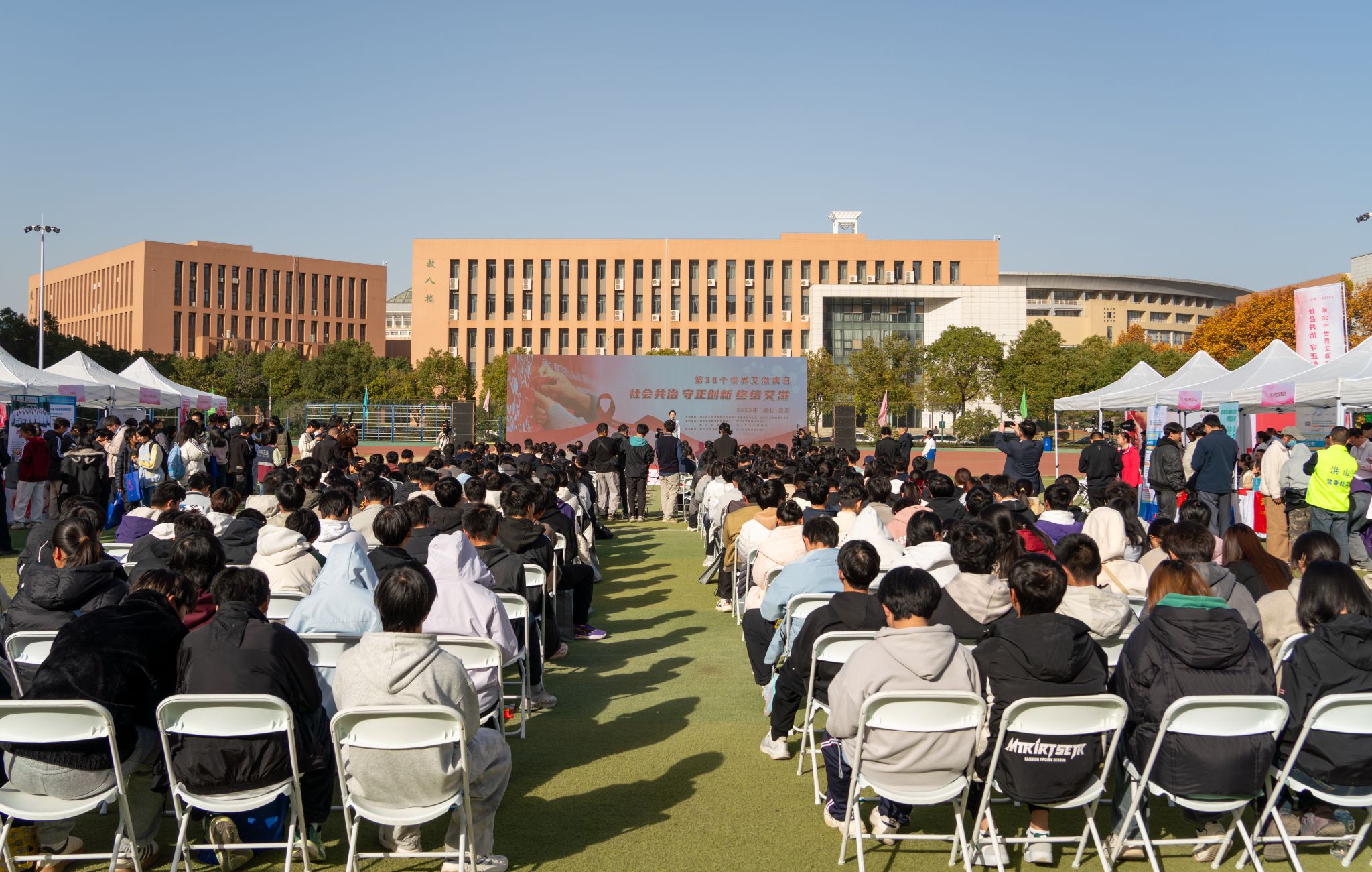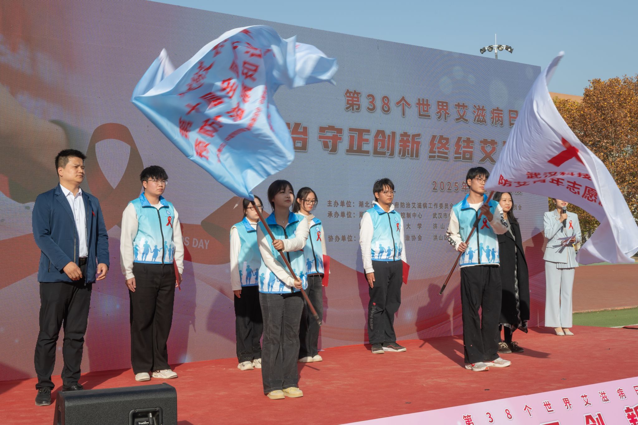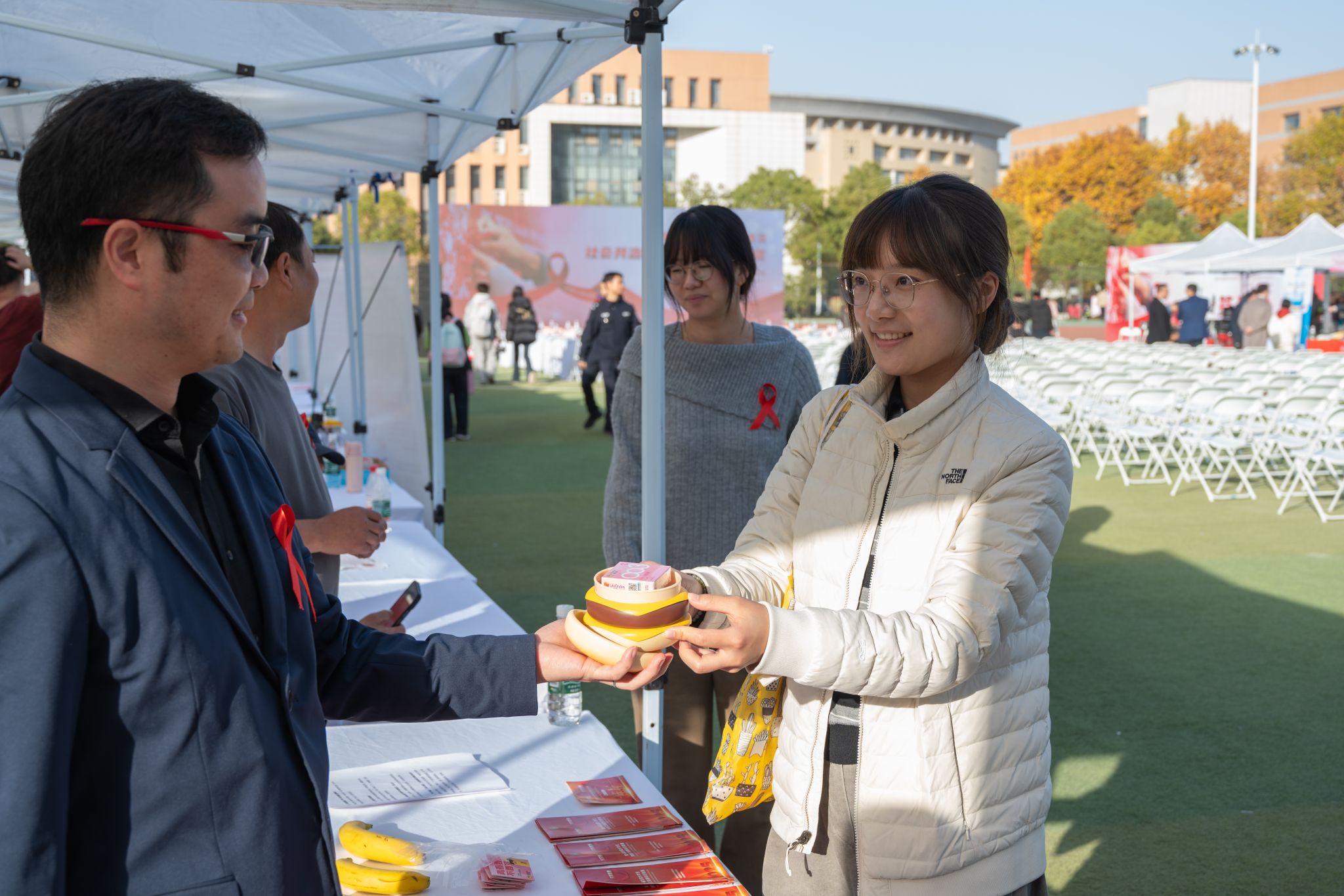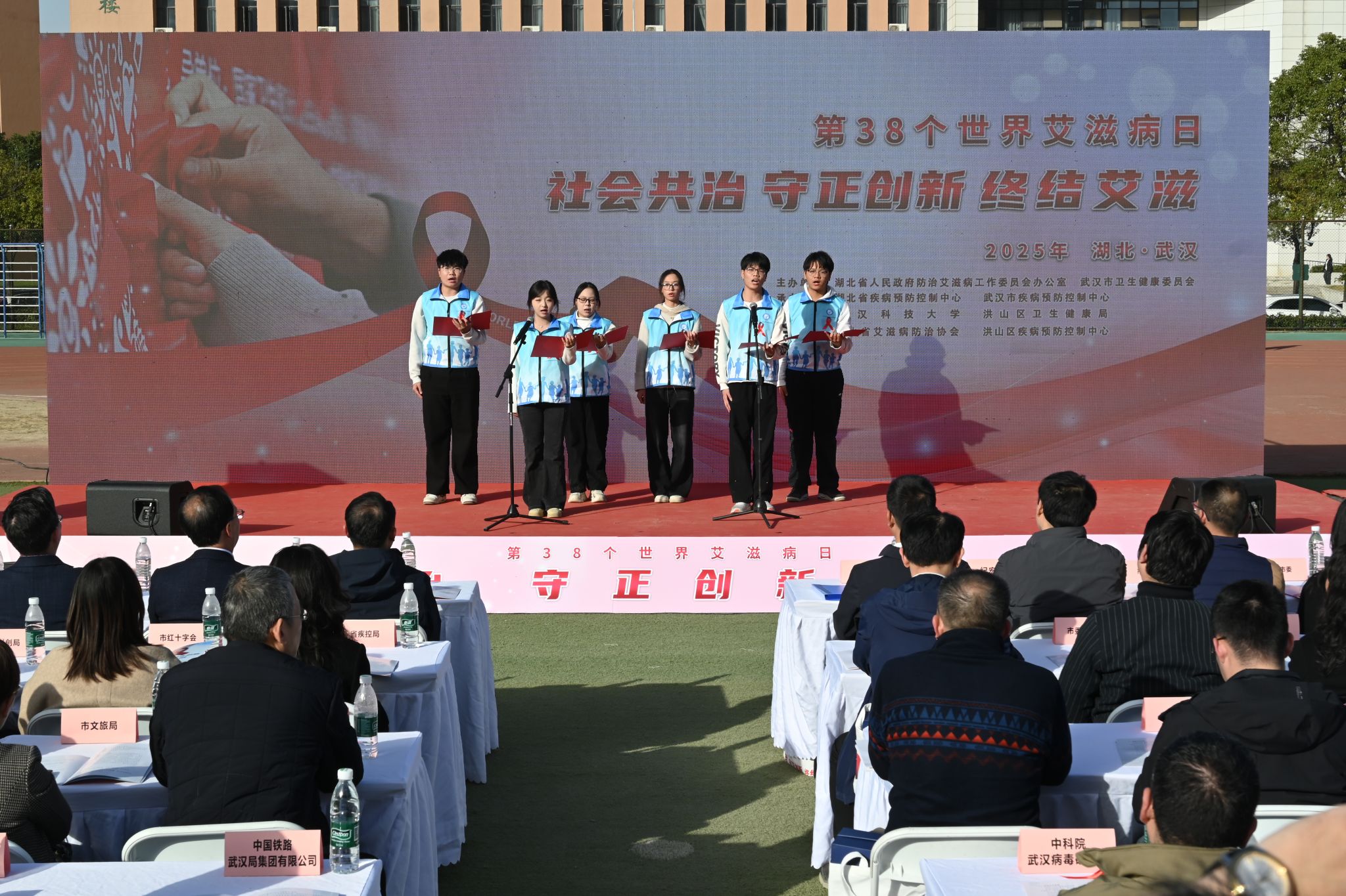 11月27日,湖北省第 38 个“世界艾滋病日”主题宣传活动在鸭脖黄家湖校区南区体育场举办。鸭脖、市卫健委、省政府防艾办和其他相关单位负责人参加启动仪式。启动仪式后,高校学生代表宣读倡议书,团省委、团市委为志愿者授旗。湖北省疾病预防控制中心等单位、企业在现场搭建展台,为师生们答疑解惑、提供健康建议。(孙正恒)
