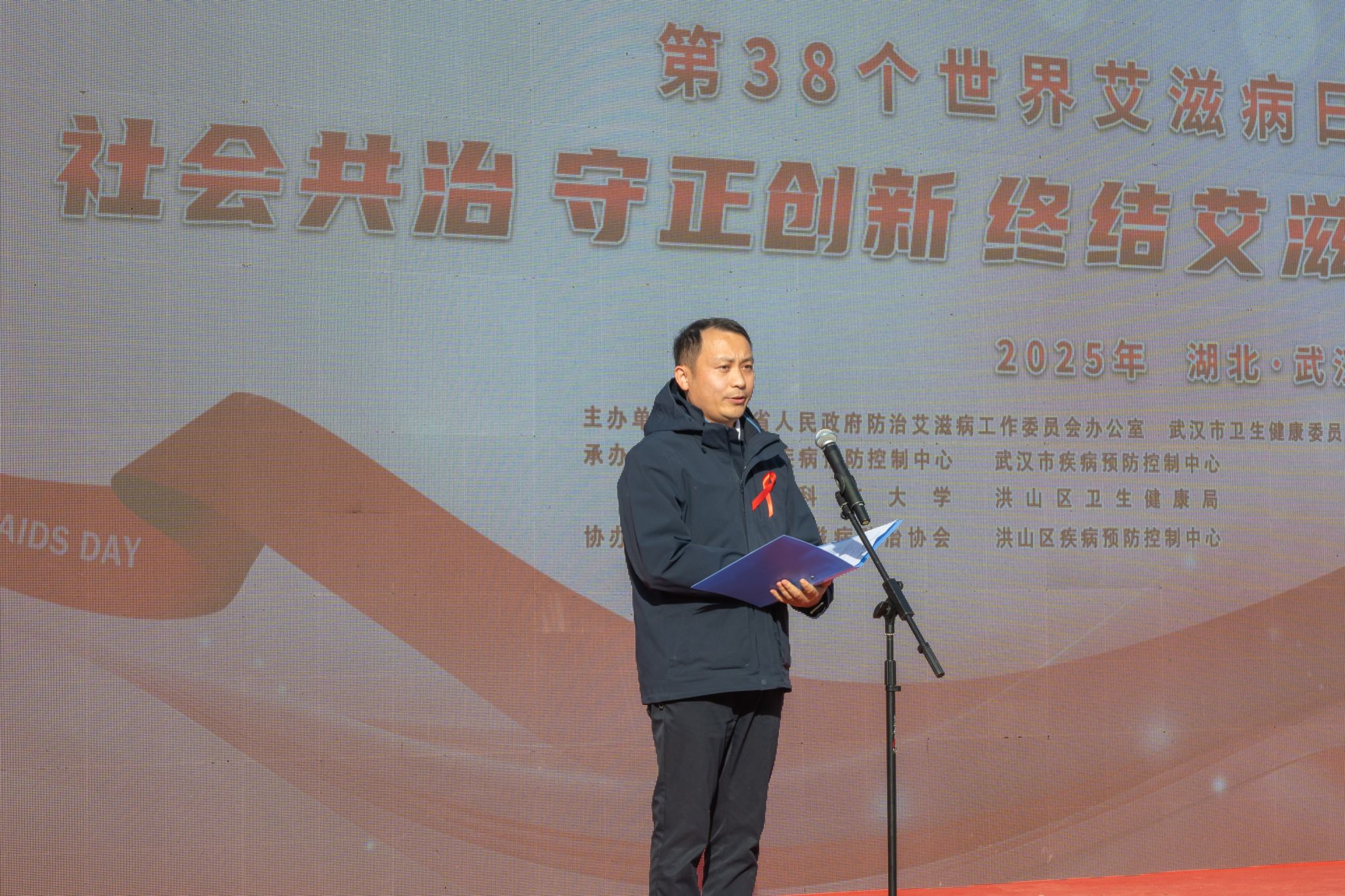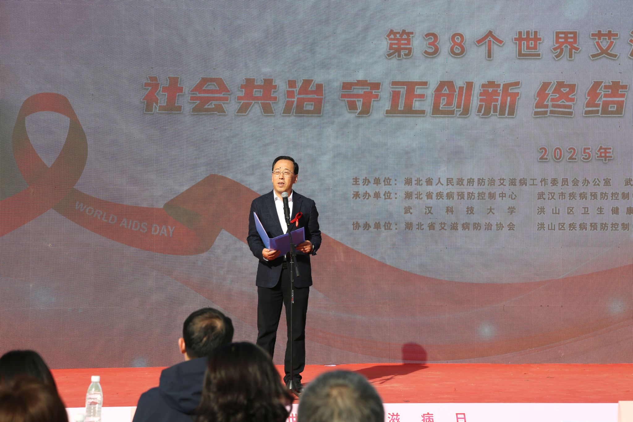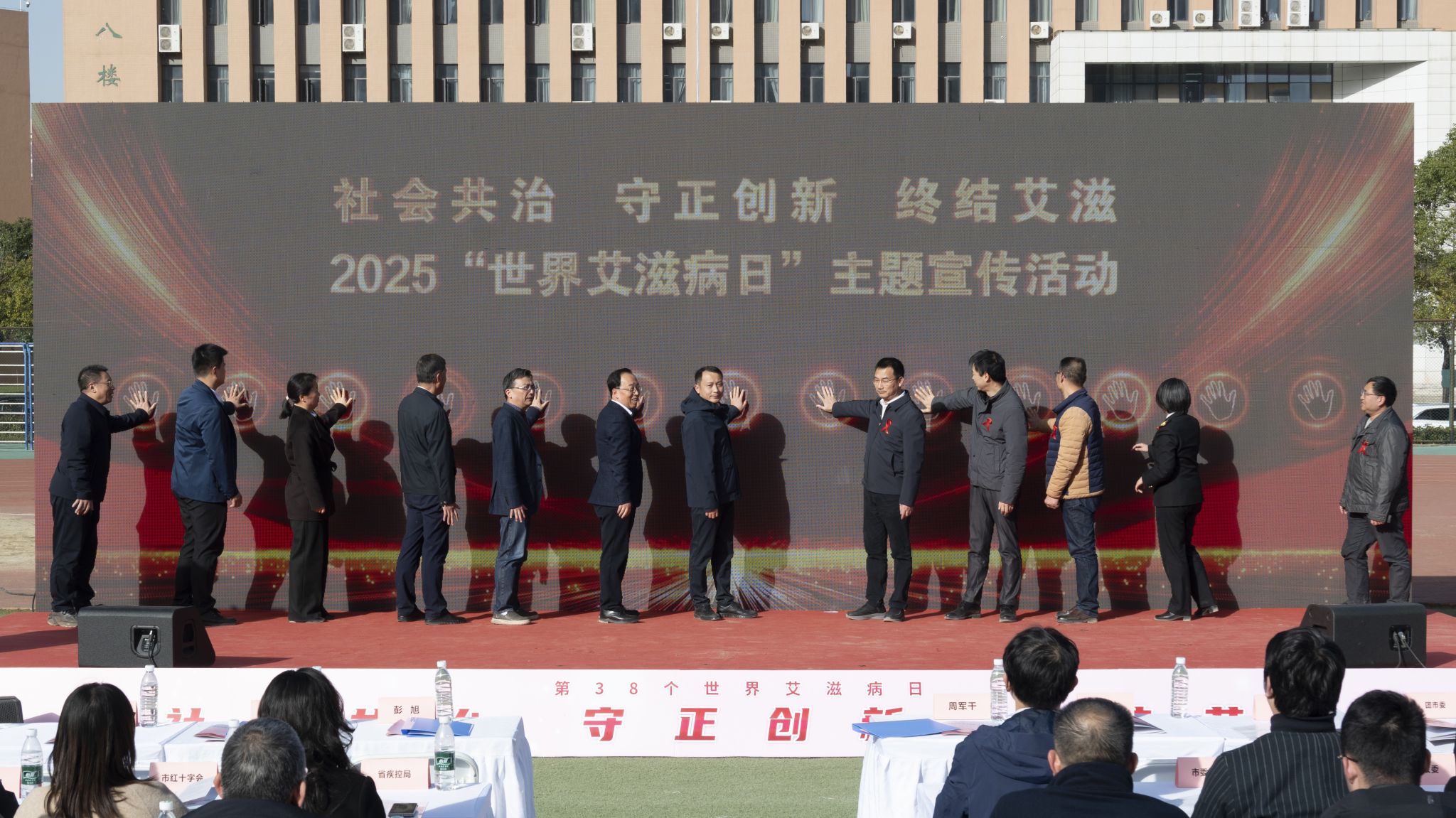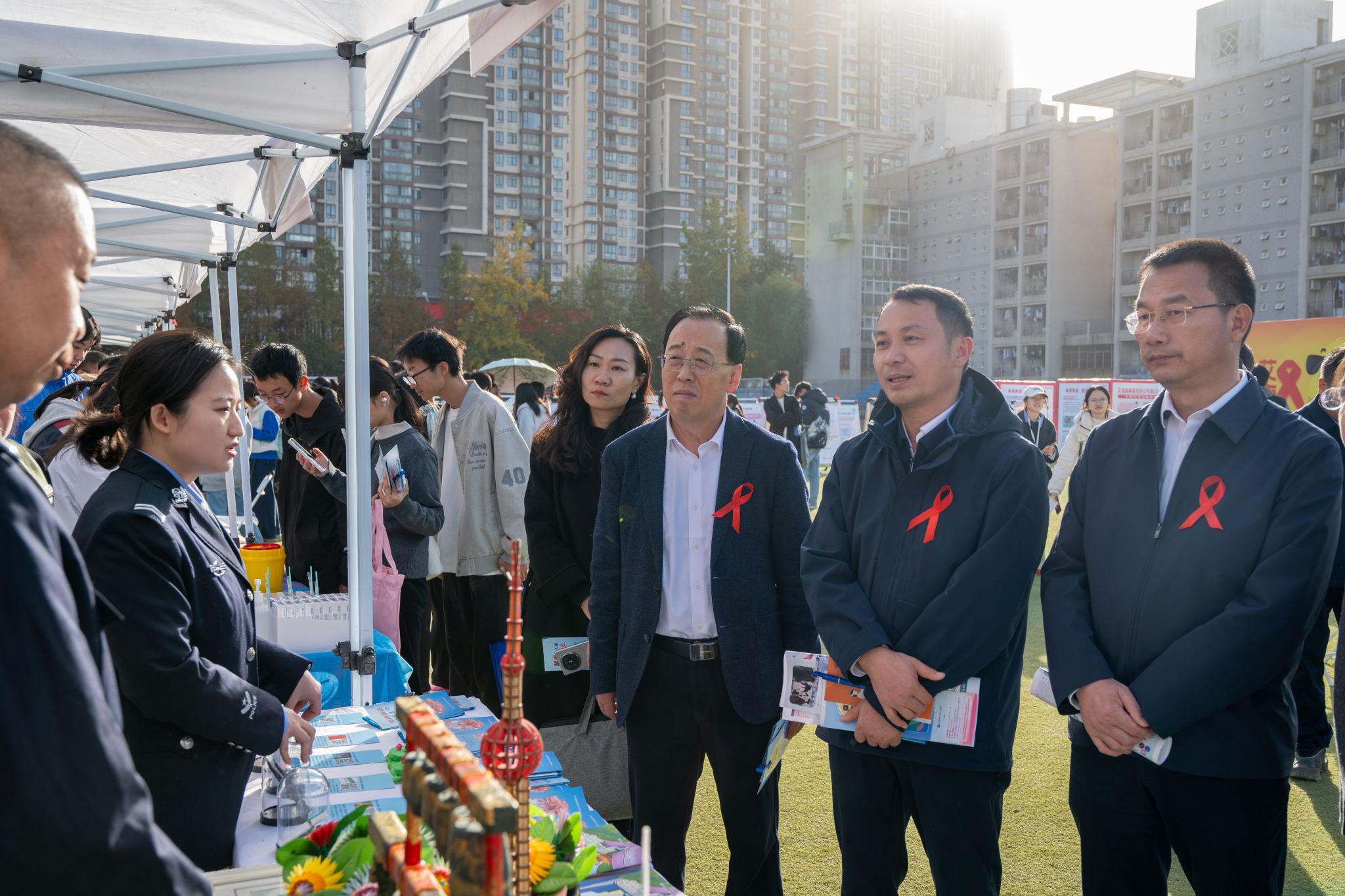 11月27日,湖北省第 38 个“世界艾滋病日”主题宣传活动在鸭脖黄家湖校区南区体育场举办。鸭脖、市卫健委、省政府防艾办和其他相关单位负责人参加启动仪式。启动仪式后,高校学生代表宣读倡议书,团省委、团市委为志愿者授旗。湖北省疾病预防控制中心等单位、企业在现场搭建展台,为师生们答疑解惑、提供健康建议。(孙正恒)