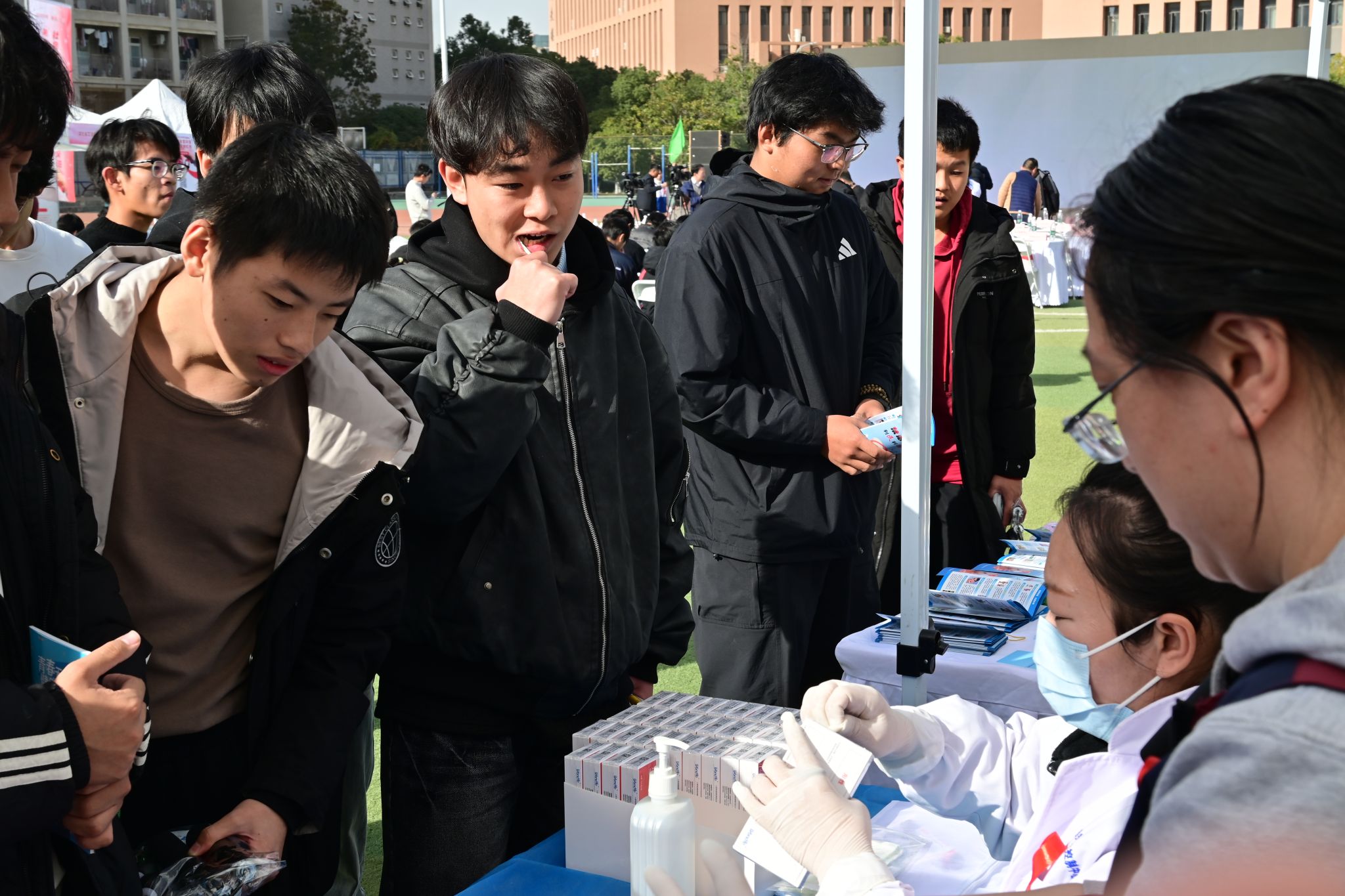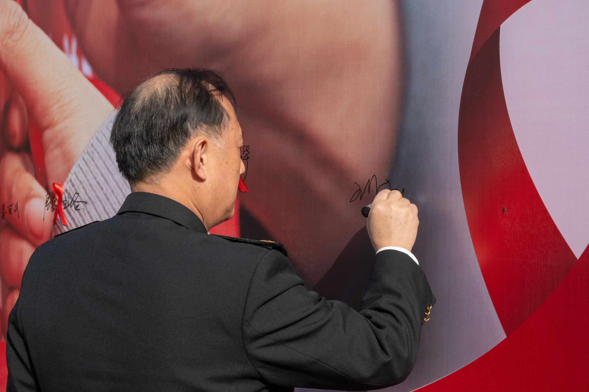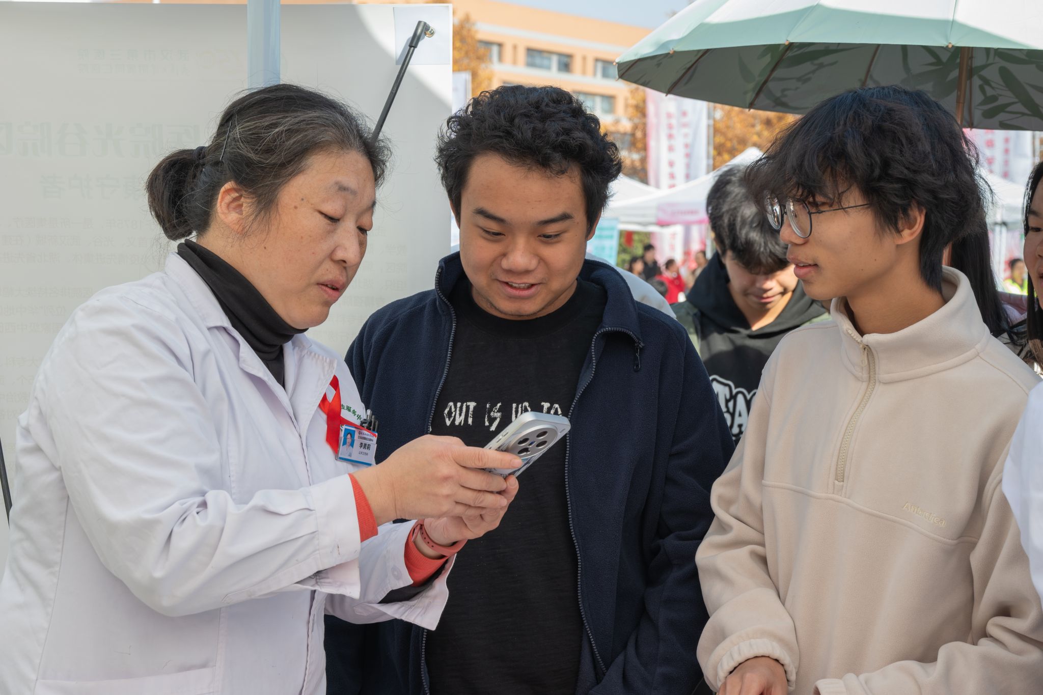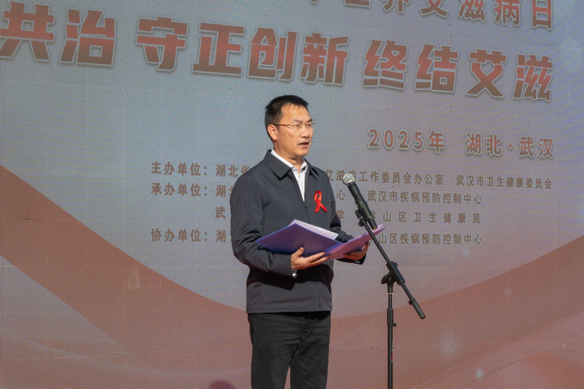 11月27日,湖北省第 38 个“世界艾滋病日”主题宣传活动在鸭脖黄家湖校区南区体育场举办。鸭脖、市卫健委、省政府防艾办和其他相关单位负责人参加启动仪式。启动仪式后,高校学生代表宣读倡议书,团省委、团市委为志愿者授旗。湖北省疾病预防控制中心等单位、企业在现场搭建展台,为师生们答疑解惑、提供健康建议。(孙正恒)