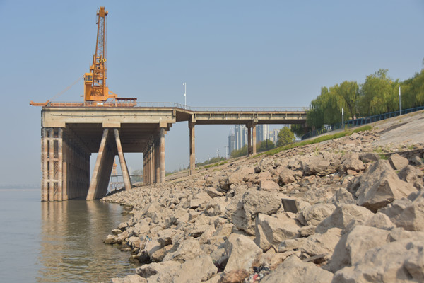 当天,武汉气温骤降,天气很冷。青山江滩边,风特别大,人很少。