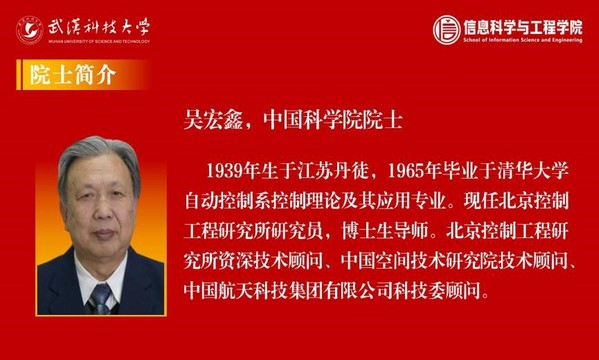 吴宏鑫院士为我国著名控制理论与控制工程专家,中国科学院院士,北京控制工程研究所研究员、博士生导师、资深技术顾问,中国空间技术研究院技术顾问,中国航天科技集团有限公司科技委顾问。目前担任鸭脖人工智能学院院长。