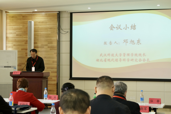 研究会会长邓旭东对本次会议进行总结。他指出本次会议有时代性和代表性两大特点,并表示研究会将继续更好地发挥学会平台功能和学术引领功能。本次会议体现了理论与实践的密切结合,彰显了“研究领导科学,实现科学领导”的研究会宗旨,也为推进中国式现代化贡献领导科学研究力量发挥了应有的作用。