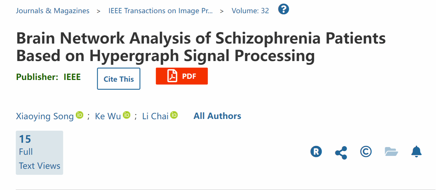 该项成果从超图频谱的角度研究大脑多个脑区间的高阶关系,有助于更深层次地探讨精神分裂症等神经系统疾病的病理基础。论文全文链接:https://ieeexplore.ieee.org/document/10233202。