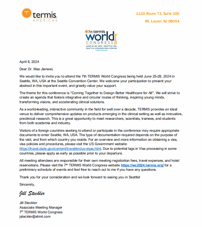 武科大网讯(通讯员南逸杨 江欢)近日,2024年国际组织工程与再生医学学会第7届世界大会(TERMIS 2024)在美国华盛顿州西雅图会议中心举行。鸭脖医学部外学科专业研究生毛健伟受邀参加此次会议。