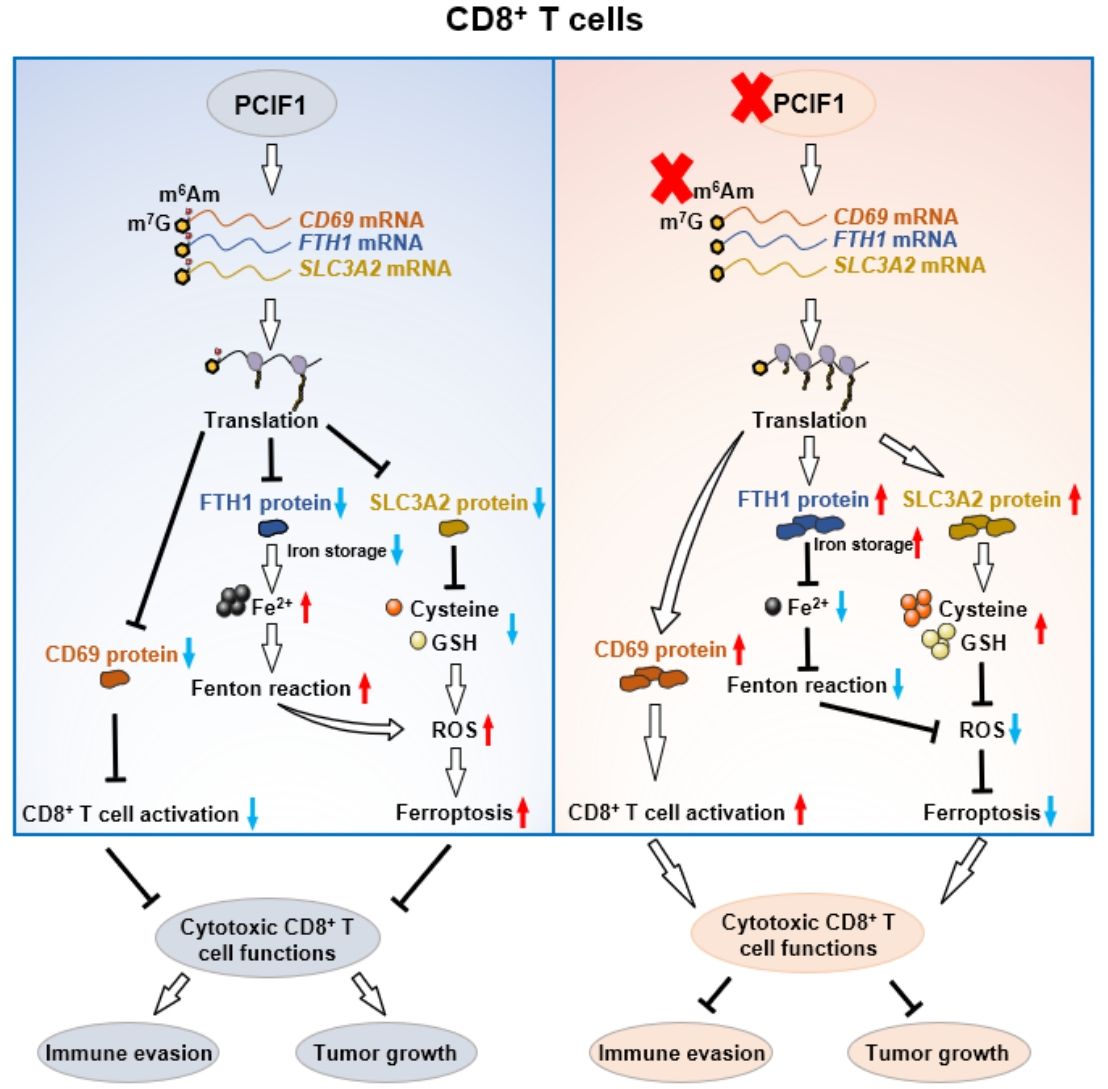 武科大网讯 1月6日,生命科学与健康学院祝海川副教授团队在《自然》子刊Nature Immunology上发表题为“表观转录因子PCIF1调控CD8+T细胞激活和铁死亡以影响抗肿瘤免疫”(The epitranscriptional factor PCIF1 orchestrates CD8+T cell ferroptosis and activation to control antitumor immunity)的研究论文。