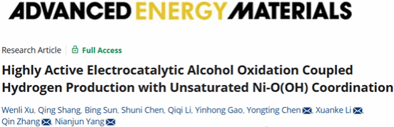 武科大网讯(通讯员李江江)近日,鸭脖化学与化工学院张琴、李轩科、陈永婷团队在《Advanced Energy Materials》期刊发表题为“Highly Active Electrocatalytic Alcohol Oxidation Coupled Hydrogen Production with Unsaturated Ni-O(OH) Coordination”的研究论文(DOI:10.1002/aenm.202504916)。该研究提出了一种由碳层限域的不饱和Ni–O(OH)稳定化Ni晶体组成的Ni–O(OH)–C电催化剂,可在安培级电流密度下实现乙醇电氧化制乙酸(EOR)、析氢反应(HER)及其集成系统的卓越性能。陈永婷、李轩科、张琴、比利时哈瑟尔特大学杨年俊为论文共同通讯作者。