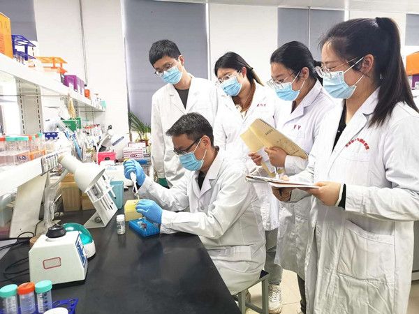 (姚凯团队在实验中。 程毓 摄)