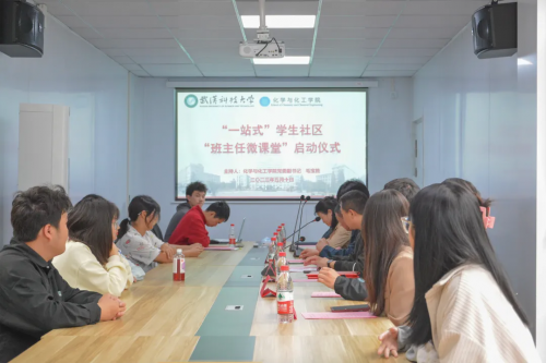 许立桥代表校党委学生工作部对化工学院“一站式”学生社区“班主任微课堂”的成立表示祝贺。他表示,化工学院“班主任微课堂"入驻一站式学生社区,是“一站式”学生社区育人功能提升的重大创新,在武科大一站式学生社区的发展进程中具有重要的实践意义。同时,许立桥希望,化工学院的“班主任微课堂”可以做到“坚持问题导向”、“坚持立足实际”、“坚持品牌孕育”,建成独具鸭脖特色的集成式一站式学生社区群落,形成一站式学生社区育人新生态圈。