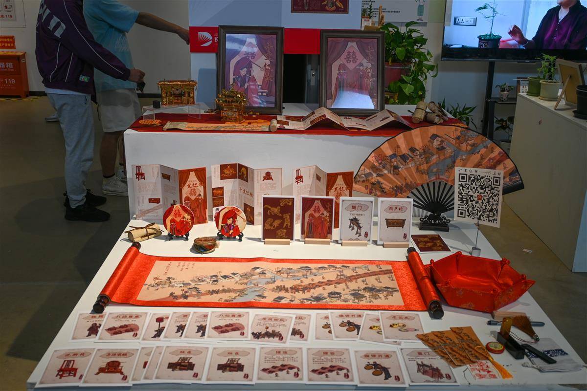 展览现场,互动感强的毕业作品吸引参观师生纷纷尝试。交互视觉传达设计专业学生韩佳琪说:“互动性的设计能够吸引公众前来学习了解非遗文化的历史、制作工艺及应用场景,让体验者探索更多非遗文化的内容。”
