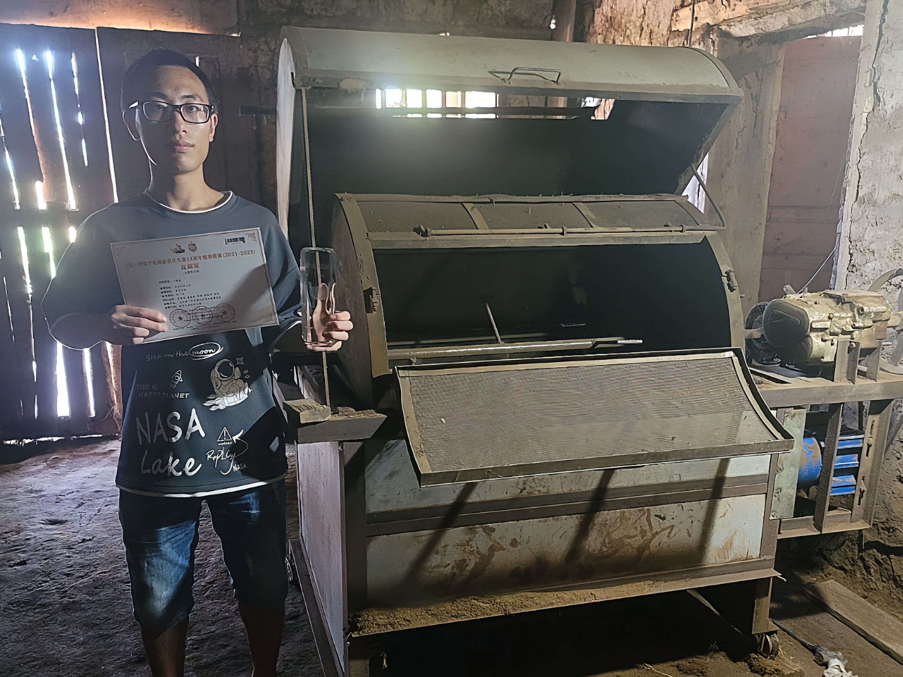 他们还为“黄连炕”设计了可变筛孔,不再需要人大力翻炒黄连。“筛筒在不断转动下实现对黄连的翻炒,其筛网轴上固定安装有T形爪以实现对黄连的搅拌,同时筛筒内的黄连在不断碰撞和摩擦下被去除表皮根须。”贺章涛说,翻炒自动化可以把父母的手解放出来,他们再也不会汗流浃背、腰酸背痛。