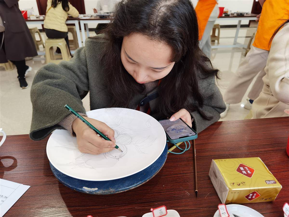 “青花和釉彩不要混合涂,烧制后釉彩会把青花盖住!”“釉彩颜色边缘可以有轻微的接触,但不要融合过多,烧制后颜色会熔在一起的!”“不要拿着陶器的突起部分,一不小心就会掰断了!”体验现场,陶艺老师不断提醒,依然有不少人“踩雷”,对于尝试者而言,“踩雷”不是错误,而是新的实验。