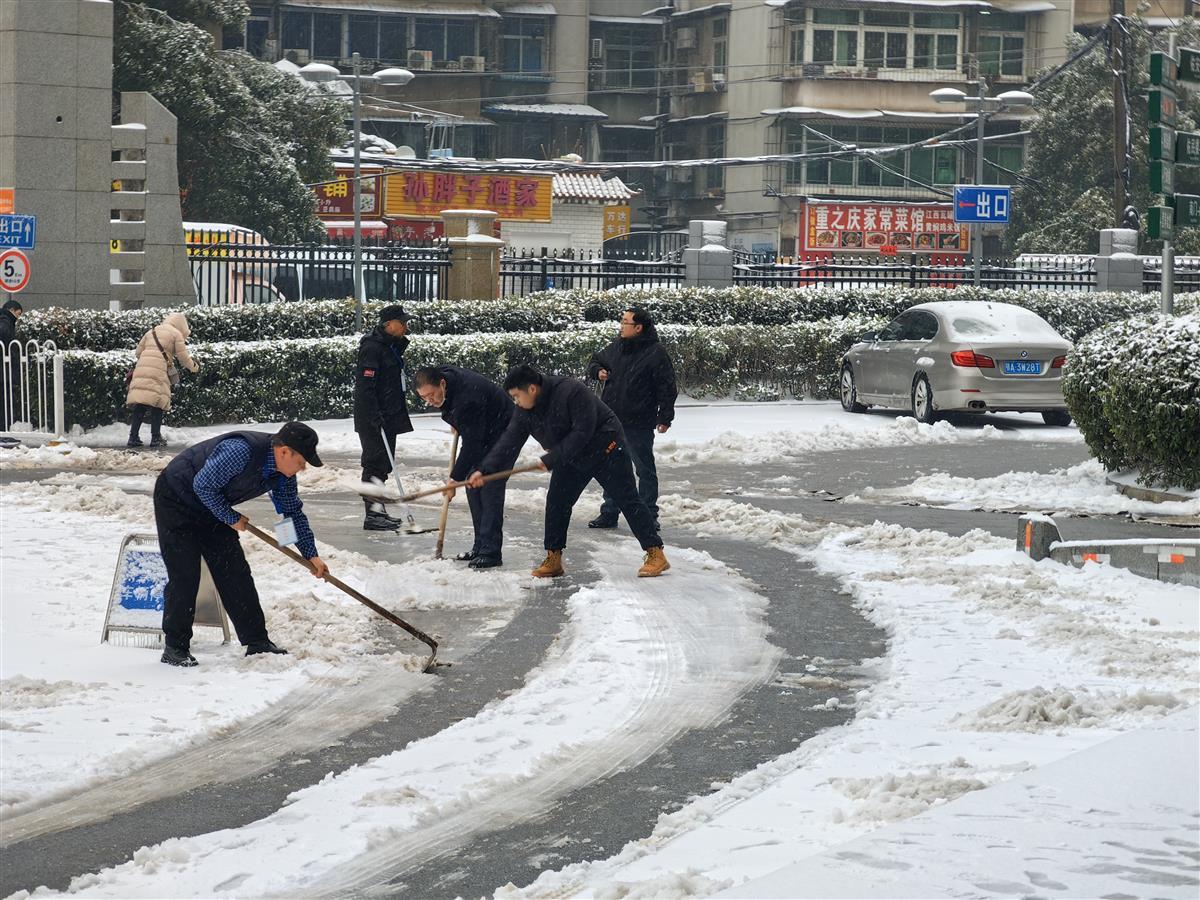面对低温雨雪天气,为了确保医院内道路畅通,保障患者安全就医,武科大天佑医院(同济天佑医院)领导班子提前加强重点部位和关键环节安全监管布控工作。