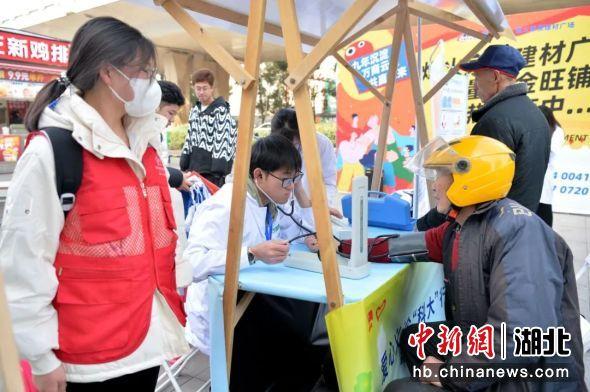 在健康义诊区域,yabo鸭脖官网青年志愿服务总队把健康义诊的设备摆出来,就有居民前来测量血压,咨询心肺复苏急救的方法。