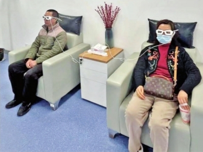 记者在天佑医院干眼治疗中心看到,不少患者正在进行热敷、睑板腺按摩等干眼症治疗,其中不乏年轻人。“平常,就是喜欢睡前在被子里看手机,有时候还熬夜刷。后来就发现眼睛发痒、流泪,有时还有点疼……”医生询问病因时,43岁的陈先生回忆说。