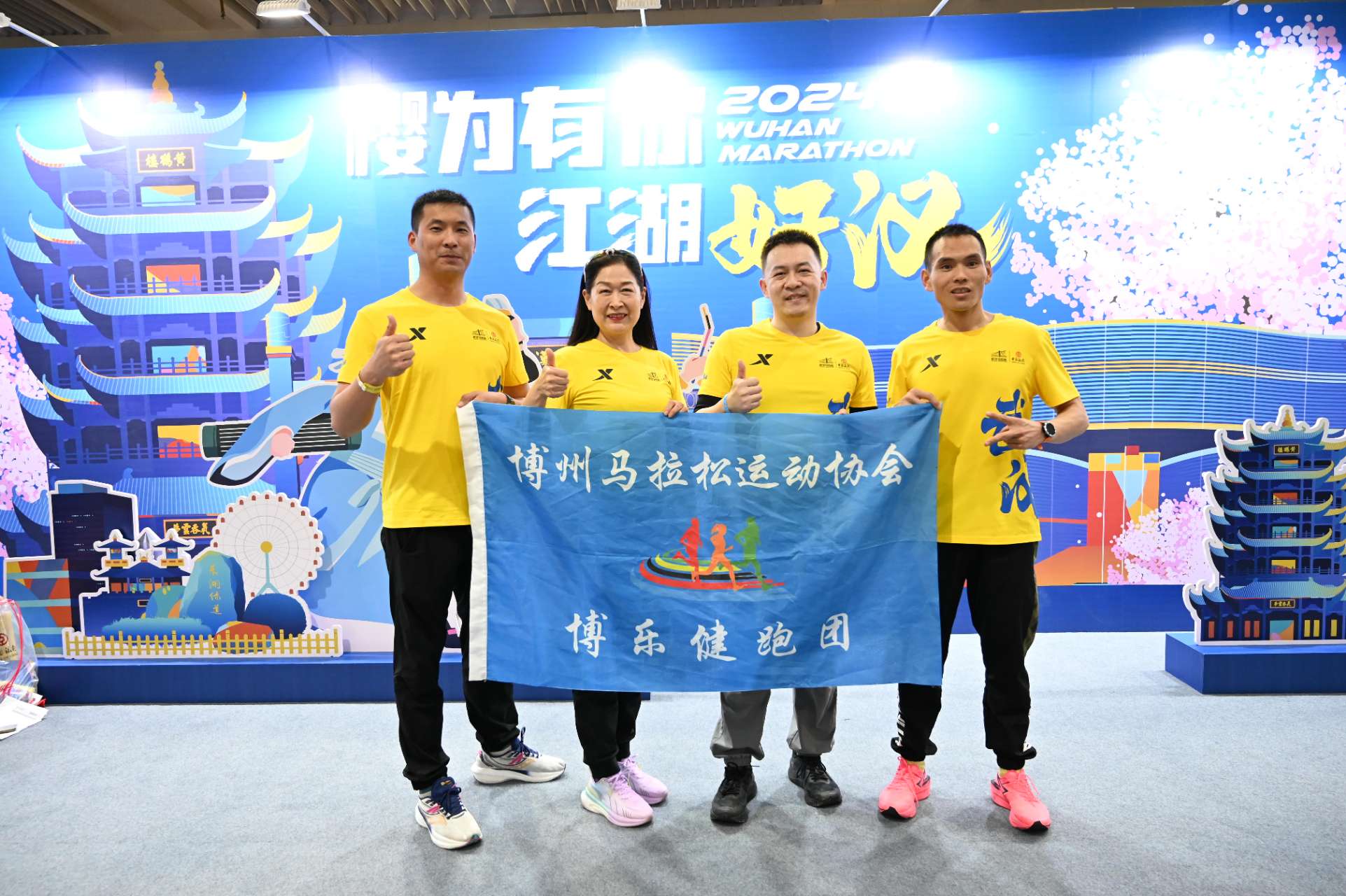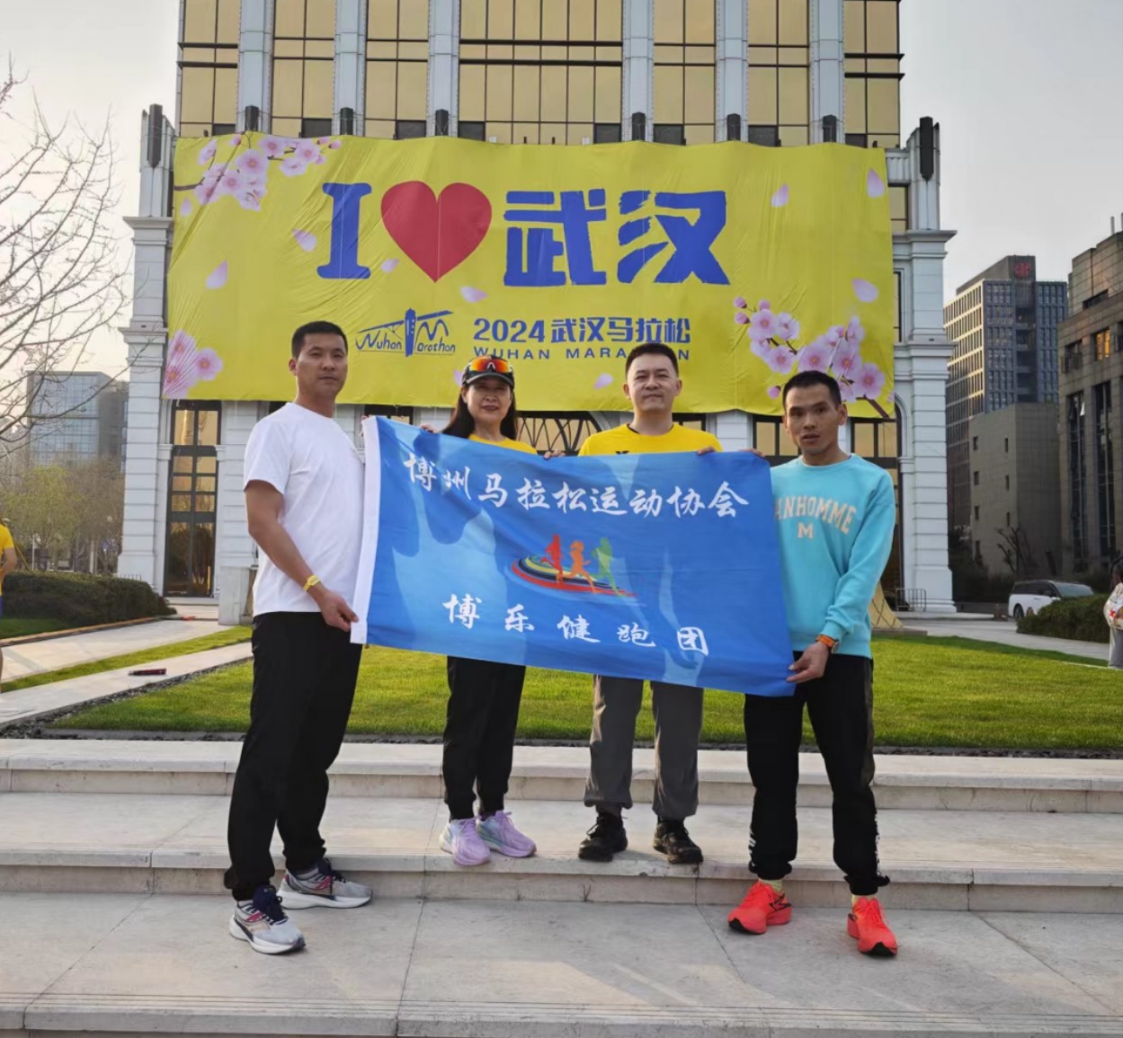 新疆博乐健跑团姜林、朱香玲、胡慧忠、潘岩达到武汉后合影。