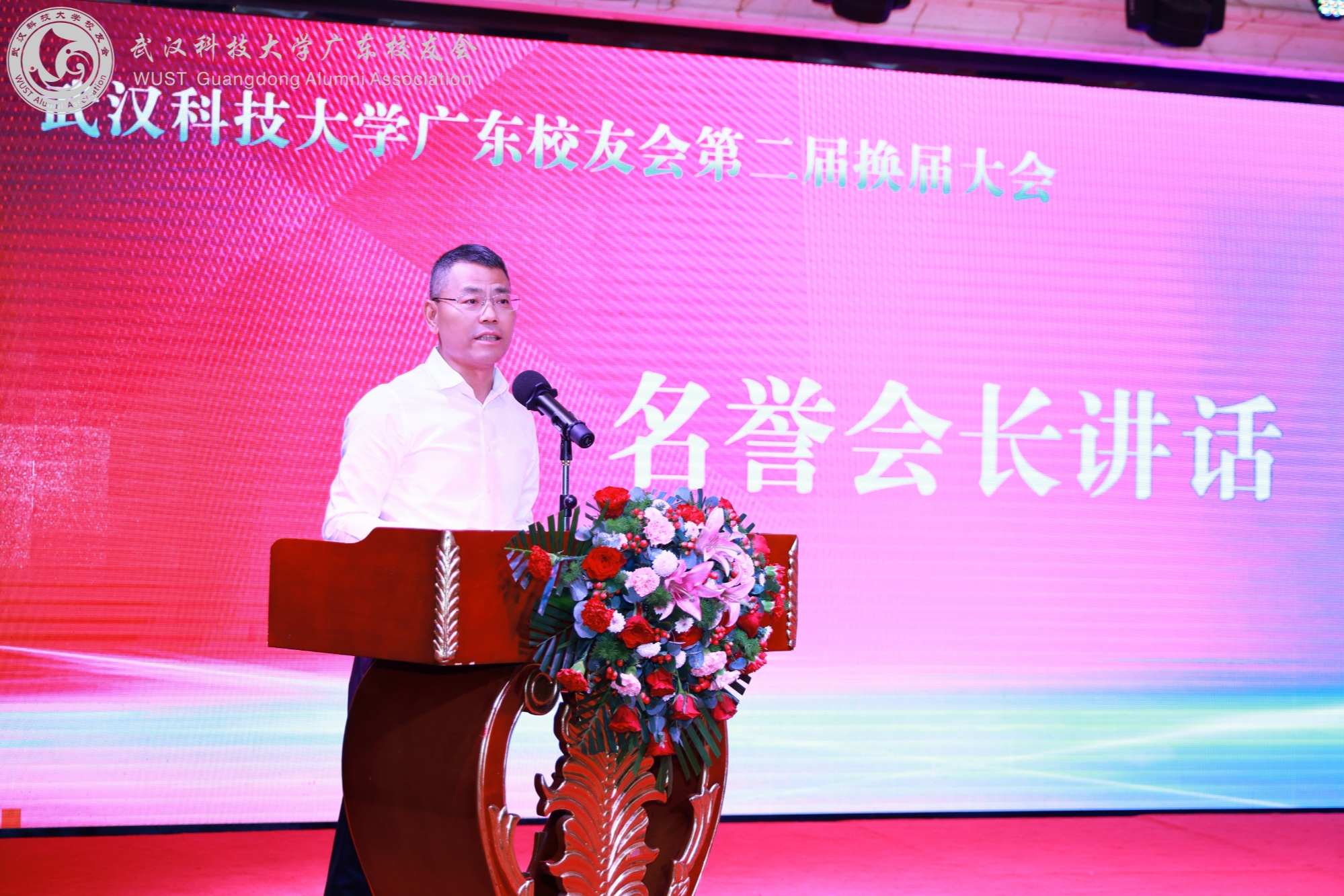 新一届理事会会长李烈军代表广东校友会第二届理事会致辞。他表示,广东校友会成功换届选举是一个新的开端,新一届理事会将不负众望,要积极团结广东校友,满腔热情地组织好校友,做好校友与校友之间、校友与母校之间的桥梁,通过学术研讨、文化交流、项目合作等多元化活动,服务好校友、服务好母校、服务好粤港澳大湾区高质量发展,主动融入本地经济、文化、社会、特别是科技创新的方方面面,积极投身到南粤大地处处充满生机的“百千万工程”中去,充分发挥武科大校友的“钢铁品质”,推动母校与校友共同发展,不断深化鄂粤两省合作,加强两地联动,通过融合发展成为高质量发展的新动能,为大湾区的创新发展贡献智慧和力量,为国家作贡献,为社会创造财富和价值,为母校增光添彩。