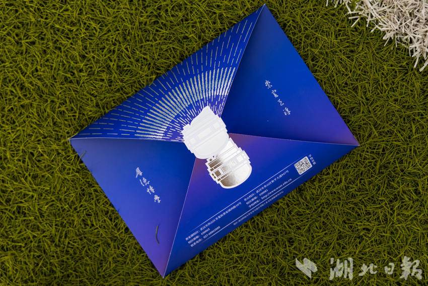 录取通知书由该校艺术与设计学院工业文化创新研究中心师生设计,以“钢铁”为主题,整体颜色呈现钢铁淬火时的蓝紫渐变色,通知书从背面整体展开后,呈现钢铁冶炼过程中溅射出铁花的效果,与武科大标志性建筑铁水包相呼应,寓意着对新一代探索者的期盼。录取通知书EMS封套上的数字“2024”则以插画方式贯穿了校园内多个标志性建筑及景观,如铁水包、谢师亭、沁湖龙舟赛等。