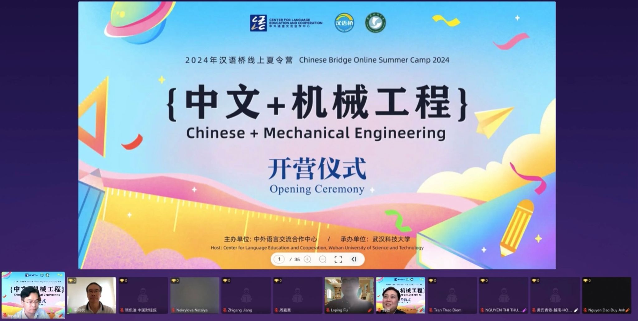 “鸭脖机械自动化学院重视国际学术交流与合作,与多座海外高校共同培养了大批具有国际视野的高层次人才。作为连接中外友好交流的重要平台,连续开展多年的‘汉语桥’架起了中华‘文化桥’,推动了中华优秀传统文化的对外传播,持续扩大着中文的‘朋友圈’,促进着世界文化的繁荣和进步。愿‘汉语桥’成为连接中外友谊的桥梁。”武科大副校长、机械学院博士生导师吕勇致辞,预祝2024年汉语桥“中文+机械”线上团组交流项目取得圆满成功。