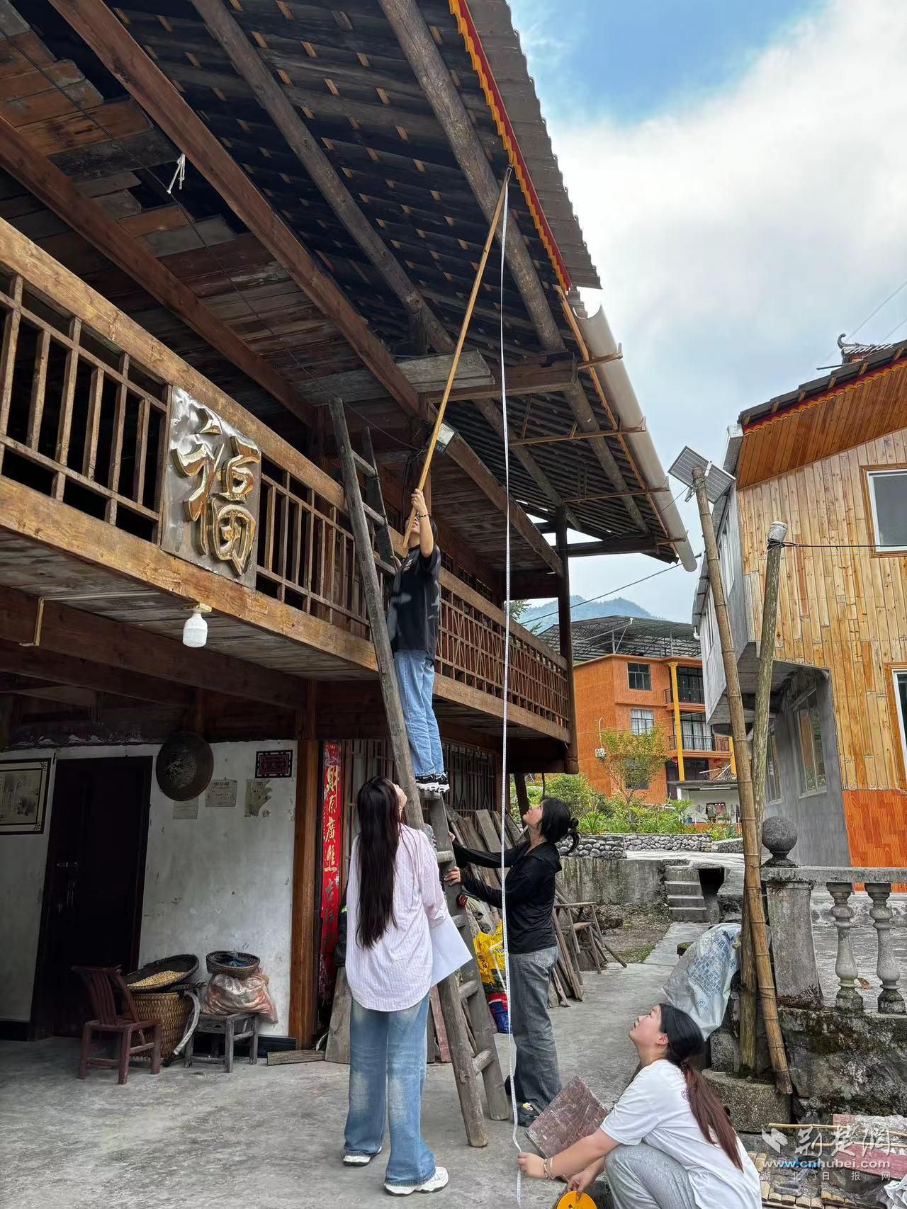“我们之前在课堂上学到的建筑模式,多讲究横平竖直,但真正到了现场,才明白不能一概而论。”为了更好地了解木头穿插结构,他们利用手中的水平仪和卷尺,仔细地对每一个数据进行精确的测量。面对非标准结构的吊脚楼,为获取准确数据,成员们不得不搭梯子、爬阁楼去丈量。