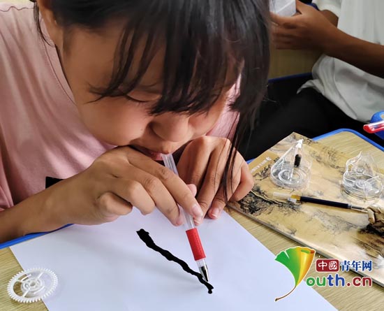 学生在制作吹画作品。yabo鸭脖官网研支团供图