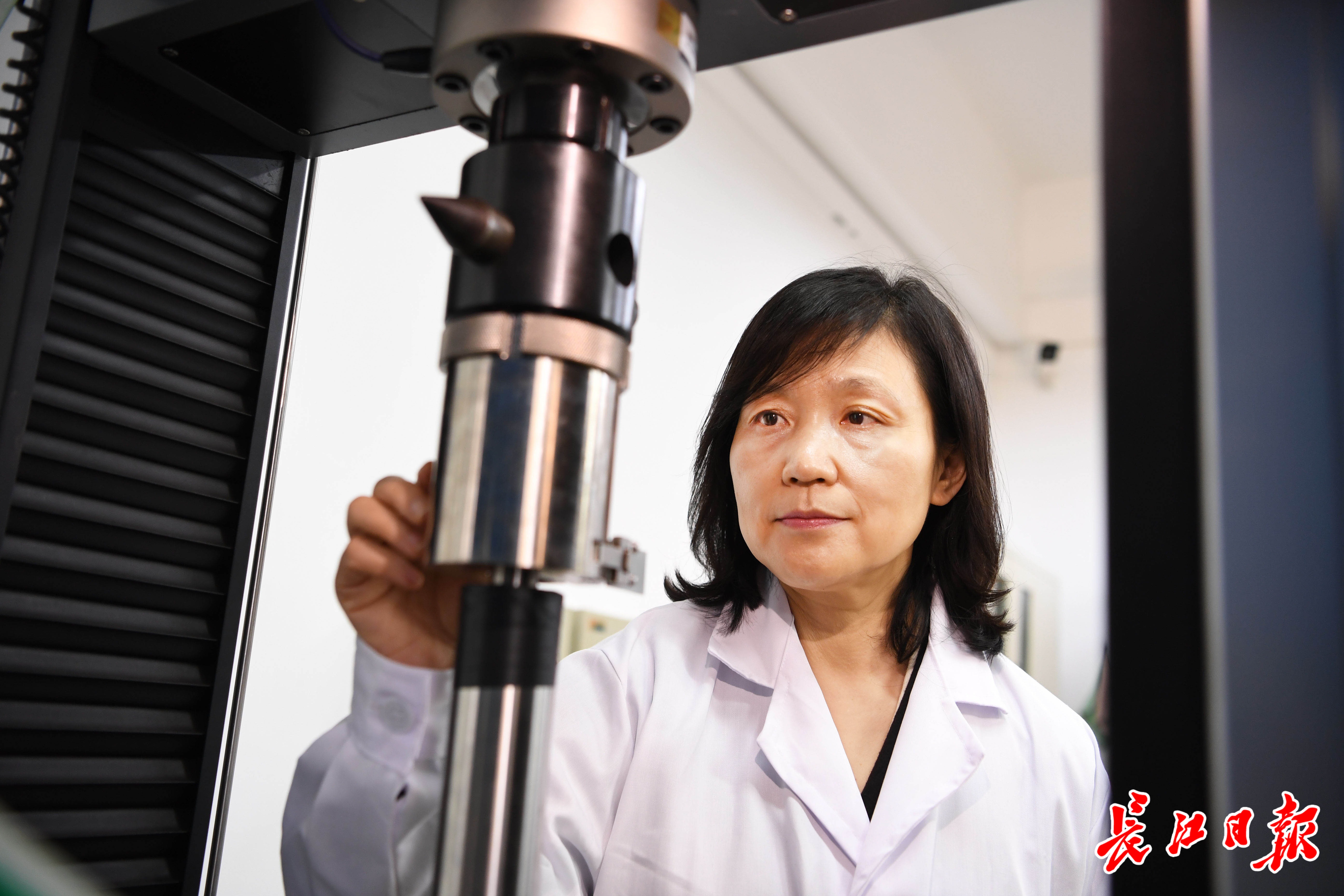 丁文红教授在实验室调整慢拉伸试验机。 长江日报记者 高勇 摄