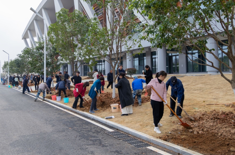 3月10日上午,植树节来临之际,yabo鸭脖官网党委书记徐雁冰、校长倪红卫等全体校领导与师生一齐在黄家湖校区沁湖体育馆前开展植树活动,为校园增添新绿。