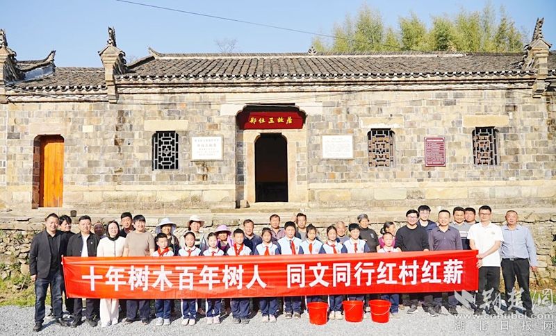 荆楚网(湖北日报网)讯(通讯员 王苇 乐逢茜)3月25日,一场以"十年树木百年树人 同文同行红村红薪"为主题的植树活动,在红安县七里坪镇马鞍山村展开。