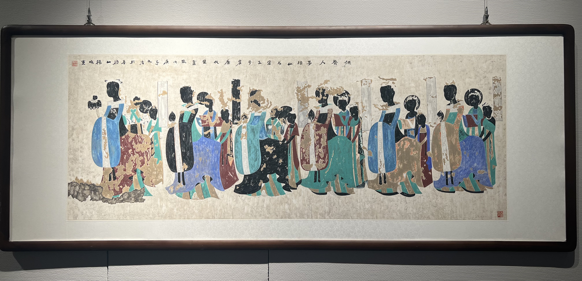 本次展览作品以麦积山石窟壁画为题材,展出各类壁画作品130余幅,以及瓷板壁画等20多种文创作品。开幕式上,麦积山石窟艺术研究所副研究员杨晓东介绍了项目详情,湖北省美术家协会秘书长王圆元等嘉宾先后致辞。