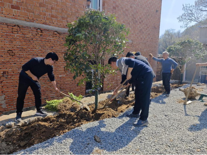 郑位三故居文化广场配套绿化,承载着马鞍山村的红绿融合发展的未来。七里坪镇镇长黄红星在现场介绍。自2023年启动马鞍村红色美丽村庄建设行动计划以来,镇政府牵头成立专项工作组,由yabo鸭脖官网刘伟毅教授团队编制村庄建设规划,联合多个部门稳步推进建设规划方案落地实施,为项目注入强心剂。