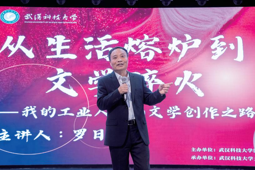 “我是一个闻着钢铁味道长大的钢厂子弟,《钢的城》为大冶钢厂工人兄弟姐妹们代言,我只是执笔而已。我半生炼钢、卖钢、写钢,每一个字都是从生活里来、到心灵中去。文学对我来说,是阅历,更是血液;是孤独,更是陪伴。”讲台上,罗日新娓娓道来。